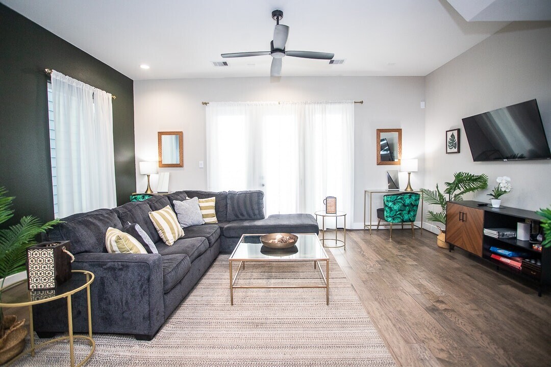 Safari-Inspired Fully Furnished Retreat in the Heart of Houston (Furniture can be removed at tenants request) 1915 Kofahl Street Unit G, Houston, TX 77023 Step into your own urban safari oasis at this beautifully designed, fully furnished three-bedroom, 3.5-bathroom home nestled in Houston’s vibrant East End. Inspired by the warm, earthy tones and textures of a classic safari lodge, this home offers a unique living experience that blends comfort, adventure, and luxury — ideal for University of Houston or Texas Southern University students, medical residents, digital nomads, or professionals working in Downtown Houston All furniture can be removed, by tenants request