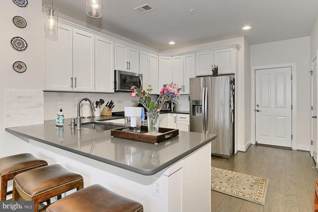 Sun filled end unit condo-townhome featuring lots of builder`s and owners upgrades. Custom Benjamin Moore paints throughout, upgraded light fixtures and mirrors in baths, hardwoods, built in closet organizers. Open main level floor plan, upgraded kitchen with stainless appliances, three bedrooms, two and half baths and one car garage. Convenient location with short distance to several metros, Del Ray, Old Town and Crystal City, DC and DCA airport and so much more!