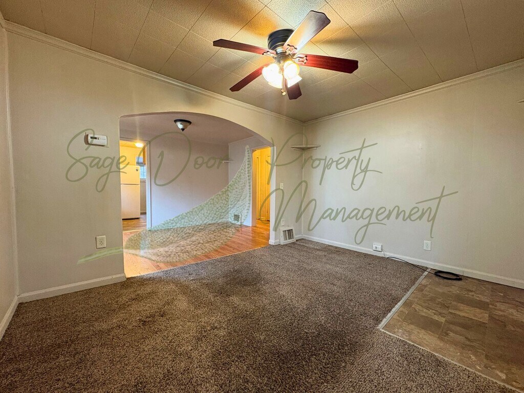 AVAILABLE NOW!!!!!!! Charming 2-bedroom, 1-bathroom single-family home featuring a welcoming covered front porch and classic architectural details. Inside, the home offers a spacious living room with plush carpeting and a ceiling fan, creating a comfortable space for relaxing or entertaining. The home flows into a bright dining area with beautiful hardwood flooring and large windows that bring in plenty of natural light. The kitchen offers generous cabinet storage, durable countertops, and a refrigerator, providing a functional space for everyday cooking. Both bedrooms offer comfortable layouts with natural light, and the full bathroom features a tiled tub/shower surround, updated vanity, and modern fixtures. This home offers a practical floor plan with charming details and inviting living spaces throughout. Nearby restaurants include Dixon’s Chili Parlor, Cafe Verona, Vivilore, Ophelia’s Restaurant & Inn, Big Boy Burgers, and Sonic Drive-In. Nearby attractions include Independence Square Historic District, Harry S. Truman Library & Museum, Vaile Mansion, Adventure Oasis Water Park, Waterfall Park, and George Owens Nature Park. Nearby schools include Ott Elementary School, Bingham Middle School, William Chrisman High School, and Van Horn High School. Transportation options nearby include KCATA Bus Routes, Independence MetroCenter Transit Center, and convenient access to I-70 and Highway 291. Nearby grocery stores include Walmart Supercenter, Price Chopper, Aldi, and Hy-Vee. Nearby pharmacies include CVS Pharmacy, Walgreens, and Walmart Pharmacy. Nearby hospitals include Centerpoint Medical Center, St. Mary’s Medical Center, and Truman Medical Center Lakewood. Rent will be $1050 and pets are allowed Deposit will be $1050 (base rate, upon approval) Sage Door Property Management