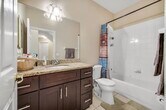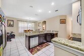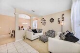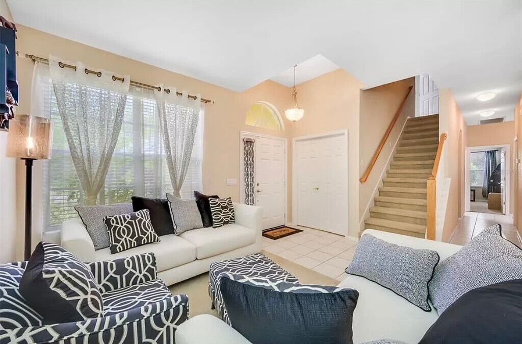 FULLY FURNISHED two-story home with four bedrooms and two bathrooms, designed to make longer stays easy and comfortable. The layout is mostly on the first floor, including three of the four bedrooms, while the fourth bedroom sits privately upstairs. The primary bedroom has a king-size bed and comes with its own en-suite bathroom that includes a walk-in shower, separate soaking tub, double-sink vanity, and plenty of storage space. Two other downstairs bedrooms have queen beds, dressers, TVs, and small workspaces or sitting areas. The fourth bedroom upstairs also has a queen bed and dresser, offering a more tucked-away spot for guests or roommates. The kitchen is stocked with full-size stainless steel appliances, granite countertops, and plenty of cabinets. It opens into the main living area, so whether you're cooking or relaxing, the whole space feels connected. There's a formal dining room with six seats and a separate smaller table near the kitchen for casual meals. The home also includes both a formal living room at the front of the house and a larger family room in the backplenty of options depending on how you want to lounge or entertain. A separate office is included, with a desk, chair, and extra monitor for remote work setups. The washer and dryer are full-size and located in their own dedicated laundry area. Outside, there's a screened-in lanai and pool area that offers a shaded spot to relax or eat, plus space to swim without dealing with bugs. Streaming is covered with Netflix included. A home security system is also installed. Sorry no pets allowed. Nearby amenities: *Publix Super Market at City Plaza at TampaPalms: about 2 miles away- handy for everyday grocery runs. *NewTampa Center recreation complex: roughly 1 mile away- offers a pool with a spiral slide, fitness center, soccer fields, tennis and basketball courts. *The Shops at Wiregrass: around 5 miles northeast in Wesley Chapel, a vibrant openair mall with shops, restaurants, and seasonal events. *Lettuce Lake Park: about 4 miles north- great for walks, wildlife viewing, boardwalks, and picnics. *Flatwoods Conservation Park: approximately 3 miles east- ideal for biking, nature hikes, and quiet outdoor