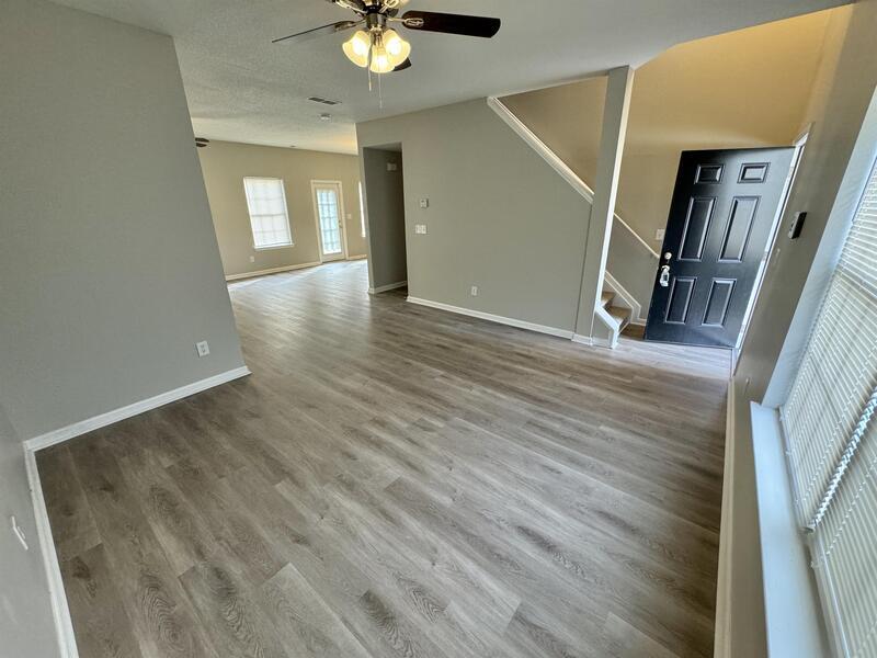 Large Home located in The Monarch Village Subdivision. This property has just been renovated completely to include new LVP flooring and paint throughout. On the main level, you'll find high ceilings and an open floor plan. The main living area features a fireplace and dining room combo. The kitchen is getting new appliances installed including the fridge! There is a half bath and laundry room also located on the main floor. Upstairs you'll be surprised by the large size of the 4 bedrooms. The 3 secondary bedrooms share a hall full bathroom while the primary bedroom has a walk-in closet and attached full bathroom. The back yard is private with a concrete patio. 2 car garage and neighborhood pool access included! Large Home located in The Monarch Village Subdivision. This property has just been renovated completely to include new LVP flooring and paint throughout. On the main level, you'll find high ceilings and an open floor plan. The main living area features a fireplace and dining room combo. The kitchen is getting new appliances installed including the fridge! There is a half bath and laundry room also located on the main floor. Upstairs you'll be surprised by the large size of the 4 bedrooms. The 3 secondary bedrooms share a hall full bathroom while the primary bedroom has a walk-in closet and attached full bathroom. The back yard is private with a concrete patio. 2 car garage and neighborhood pool access included!