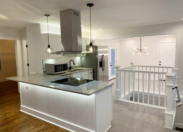 BROAD RIPPLE 4BR/2BA FULLY RENOVATED!! Rebuilt like new this 4 Bedroom ranch retains its Broad Ripple charm while featuring front and back decks, new kitchen and baths, fully finished basement with 2nd living area, 2 large lower level bedrooms with walk-in closets, and laundryroom. Main level has refinished hardwood flooring, 2 bedrooms, renovated bath, breezeway dining area all bright and open. Fully fenced, private back yard with mature trees and firepit. 1-car attached garage and additional off street parking. Prime location close to Broad Ripple Park, restaurants, etc. and easy access to downtown, and Keystone Crossing. Don't miss this opportunity! Professionally Managed. 2 year lease required. This property allows self guided viewing without an appointment. Contact for details.