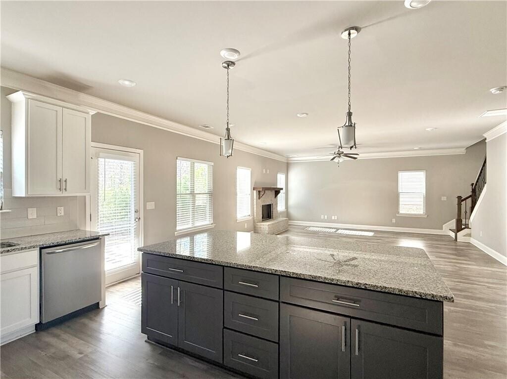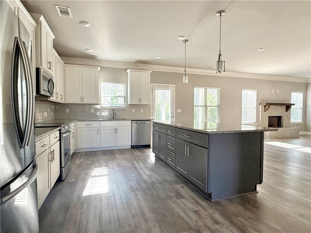 Welcome home to this beautifully maintained,modern two-story residence located in a very peaceful Castleberry Hills. The front door opens to a versatile flex room,ideal for a home office or formal dining space. The home features an open floor plan filled with abundant natural light,creating a bright and welcoming atmosphere throughout. The spacious,chef-inspired kitchen showcases crisp white cabinetry,stainless steel appliances,and expansive granite countertops,all centered around a large island. Seamlessly connecting to the family room with a cozy fireplace,this space is perfect for everyday living and entertaining. Step outside to the covered walk-out porch overlooking a serene,wooded backdrop—ideal for relaxing mornings or evening gatherings. Upstairs,the oversized primary suite offers a true retreat with two walk-in closets and a spacious ensuite bath featuring a soaking tub,separate shower,and double vanity. Two additional generously sized bedrooms share a full bathroom,while a fourth ensuite bedroom with its own walk-in closet is perfect for guests or multigenerational living. Combining modern comfort,thoughtful design,and peaceful surroundings,this home is ideal for both everyday living and entertaining. Landlord is a Licensed Agent. MLS ID 7698097