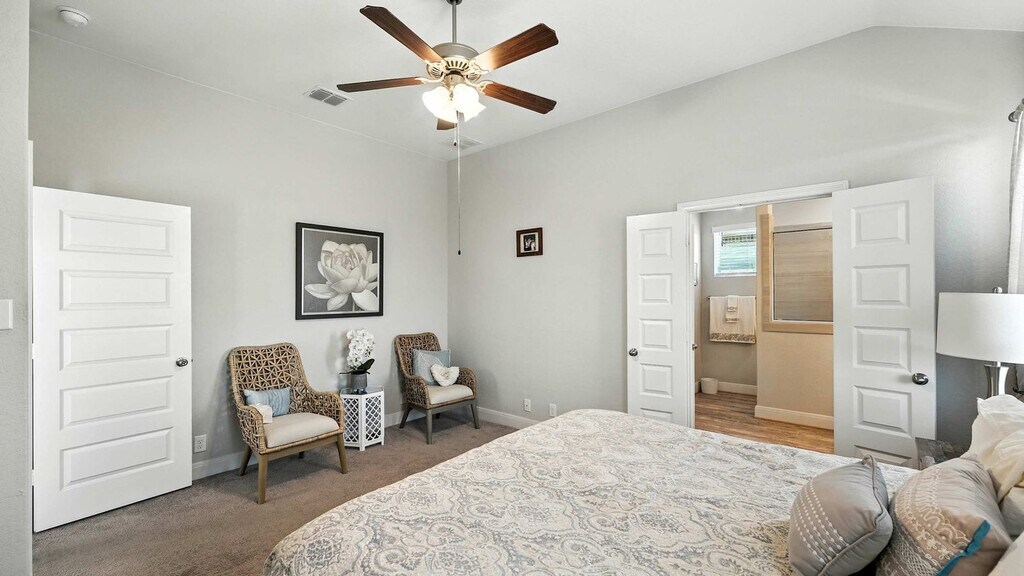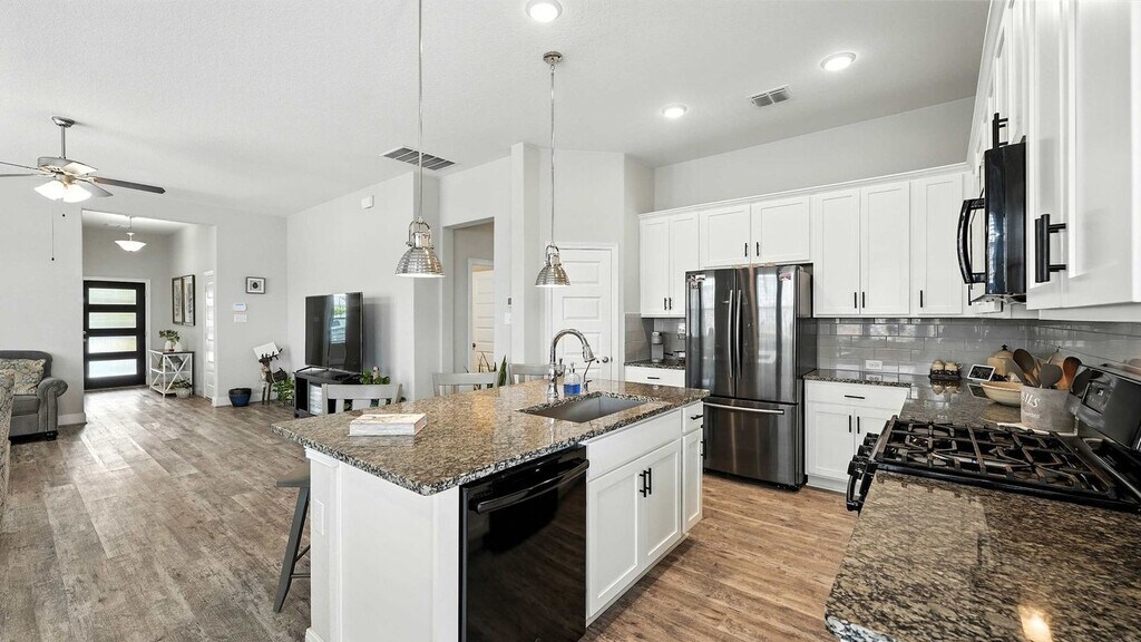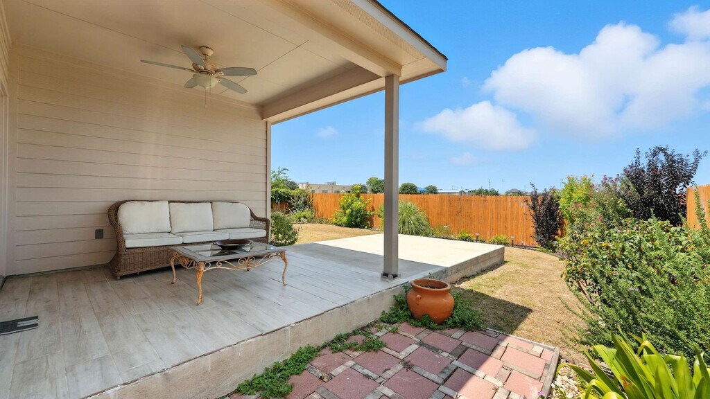 Settle in and feel at home in this fully furnished New Braunfels home, ideal for monthly stays, relocations, or extended Hill Country getaways. This single-story home features an open layout and is designed with real-life comfort in mind. The kitchen is fully equipped for everyday cooking and features a large island with bar seating. The living and dining areas flow seamlessly together, creating a relaxed space. The primary suite offers a king-size bed, private bathroom, walk-in closet, and a cozy seating area. Two additional bedrooms provide flexible sleeping arrangements. Outside, enjoy a fenced backyard, covered patio, and grill. A washer and dryer and a two-car garage provide convenience for extended stays. Located in a quiet, friendly New Braunfels neighborhood, this home offers a great balance of peaceful residential living and easy access to local favorites. Guests have access to walking trails, greenbelt space, a playground, tennis court, and basketball court. You’re just a short drive from shopping, dining, grocery stores, and medical facilities, with easy access to everything New Braunfels has to offer. Spend weekends floating the rivers, exploring downtown New Braunfels, or taking a quick drive to Canyon Lake and the Texas Hill Country. Quiet hours are between 10:00 PM and 7:00 AM. A vehicle is recommended to get around the city. Includes a dedicated office/flex room that makes working from home easy and comfortable. [SI]