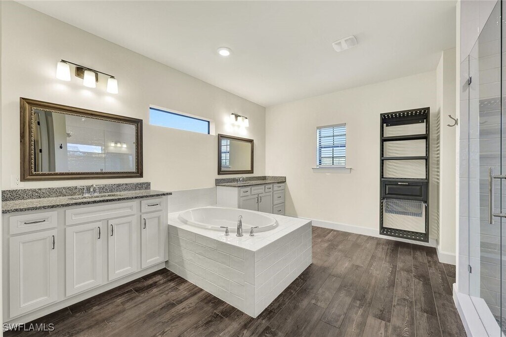 Discover an exceptional living experience in this spacious Heatherton model home,built in 2020,with 4,290 sq ft of luxurious living space. From the moment you walk in,you'll feel right at home in this beautifully designed 5-bedroom,4.5-bath property,featuring a bonus room,loft,and a custom $16k staircase with elegant bannisters. The bright,open gourmet kitchen is a chef’s dream,complete with an oversized island,extended cabinets,and captivating views of the two-story great room and lanai. Thoughtfully designed for comfort and flexibility,the first floor includes a bedroom,den,pool bath,bonus room,mudroom,and an impressive two-story family room with panoramic views of the lanai and private preserve. Upstairs,the master suite is a true retreat,with a separate sitting room,two spacious walk-in closets,and an oversized shower. Each guest bedroom offers walk-in closets with organizers for easy storage. The home also includes a three-car garage and plenty of additional storage space throughout. Located in The Place at Corkscrew—Southwest Florida’s premier lifestyle community—you’ll enjoy access to world-class amenities,including a resort-style pool with a 100-foot waterslide,poolside dining,a two-story fitness center,adult bourbon lounge,and sports courts for pickleball,tennis,and more. This home offers not just a place to live,but a lifestyle to love!