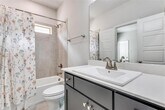 This charming 3-bedroom, 2.5-bathroom home in Farmers Branch provides both comfort and convenience. The open-concept living space is ideal for entertaining, complemented by a modern kitchen with plenty of cabinetry and a breakfast bar. The primary suite boasts an en-suite bathroom with dual sinks, a soaking tub, and a separate shower. Two additional bedrooms are generously sized and share a full bathroom. The home also includes a versatile extra room, a private fenced backyard, and a two-car garage. Situated in a welcoming neighborhood with easy access to parks, schools, and amenities. It also comes with Refrigerator, Washer and Dryer.