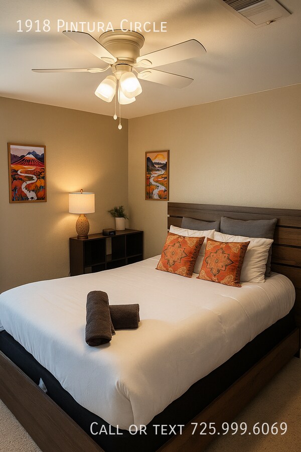 Spacious Two-Story Las Vegas Home with Private Pool, Game Room & No HOA Welcome to this beautifully maintained 2-story home offering approximately 1,755 sq ft of living space on a generous 6,534 sq ft lot. Designed for both comfort and entertainment, this property features 3 private bedrooms, 3 bathrooms, and flexible sleeping arrangements with up to 5 beds—ideal for large households or investment opportunities. The open-concept main living area includes a cozy fireplace and smart TV, seamlessly connecting to a fully equipped kitchen with modern appliances and a dining area. A dedicated game room with a pool table adds a fun and unique touch, perfect for entertaining guests. Step outside to your private backyard oasis featuring a swimming pool (unheated), outdoor seating, and a BBQ area—ideal for relaxing or hosting gatherings. ** Rent includes monthly pool service fee and trash**