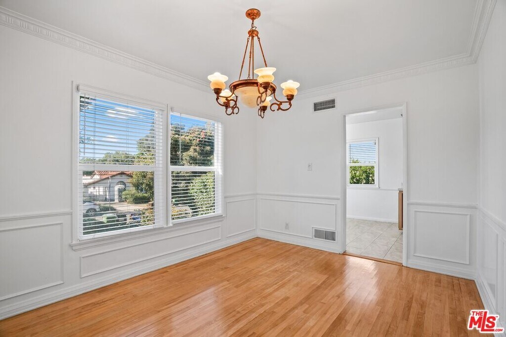 Minimal Traditional Meets Modern Living in Westwood! Polished oak wood floors add a rich and traditional foundation with crown moldings throughout that signals a formal and finished space. Spacious and open light filled living room with vertical windows in living area allowing an abundance of natural light. Well defined traditional formal dining room w/wainscoting panel molding. Light filled kitchen with traditional wood cabinetry, bay window and breakfast nook elevated the kitchen space. Central Heat and A/C with Nest thermostat, Dedicated interior laundry room adjacent to the kitchen. Enjoy the luxury of a tankless water heater and ample storage space throughout. All bedrooms boast ample square footage and excellent natural light. Private yard with dense hedges that create a privacy screen from neighbors. Separate 2 car garage and long driveway to park. Unbeatable location with immediate access to premier Century City Shopping Mall. Moments away to the coveted Westwood Charter School. Please note certain images have been virtually staged to show potential furniture placement and design. Fireplace is decorative only and cannot be used. No pets of any type. No smoking/vaping. MLS# 25621463