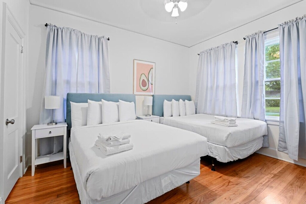 Welcome to this adorable house on a quiet cul-de-sac in the Garden District! This home can accommodate up to 18 guests. Climb a few stairs to the front door and use a digital keypad to enter. Feel at home in this charming space. Enter into the beautiful and modern living room. This space offers comfortable accommodations during the day and can be used to sleep guests on the sofa bed at night. The fully equipped kitchen and well-appointed dining room are through the living room. This home has four bedrooms and one open room we converted into an extra sleeping space. Note: The open/semi-private room does not have a door and is open to the laundry room and a bathroom. Two of the bedrooms (both with two full beds) are upstairs, and so is one full bathroom. The additional two bedrooms and open room plus two full bathrooms are on the main level. Outside, a BBQ and patio furniture is available for use! Pets are welcome with a fee. A Pack-N-Play and vacuum are available upon request. This house is conveniently located in a residential area with easy access on major highways and interstates. It's within walking distance to restaurants, shopping, and Alabama State University! Quiet hours are between 10 PM and 7 AM. You must be at least 21 years of age to rent this property. If there are any signs of smoking cigarettes, vapes, e-cigs, pipes, etc. (smell, ash, etc.) in or around the home, an automatic $500 damage charge will be incurred. The same charge applies if cigarette butts are found outside of the home. If marijuana is smoked in or around the home a $500 fee will be charged, and details about the reservation may be turned over to the appropriate authorities. Parties are prohibited at the home. Other events are permitted at the home only with prior approval. If you violate quiet hours and disturb the neighbors, we will cancel your reservation; you will be required to leave the property immediately and you will not be eligible for any refunds. We may monitor noise with exterior cameras and/or noise monitoring technology. You will be responsible for any damage to the home or its furnishings during your stay. Please bag all trash and place it in the bins provided. There is a $100 charge for third party trash removal if an excessive amount of trash is left at the property. Pets must be crated when they are left unattended in the home. Pets are not allowed on furniture or beds, and all waste must be cleaned up from the yard. All pets require a non-refundable pet fee. If there is evidence of pet hair on the furniture, excess hair in the home, stains, or waste found in the yard or home, you will be charged the cost to clean this. [SI]
