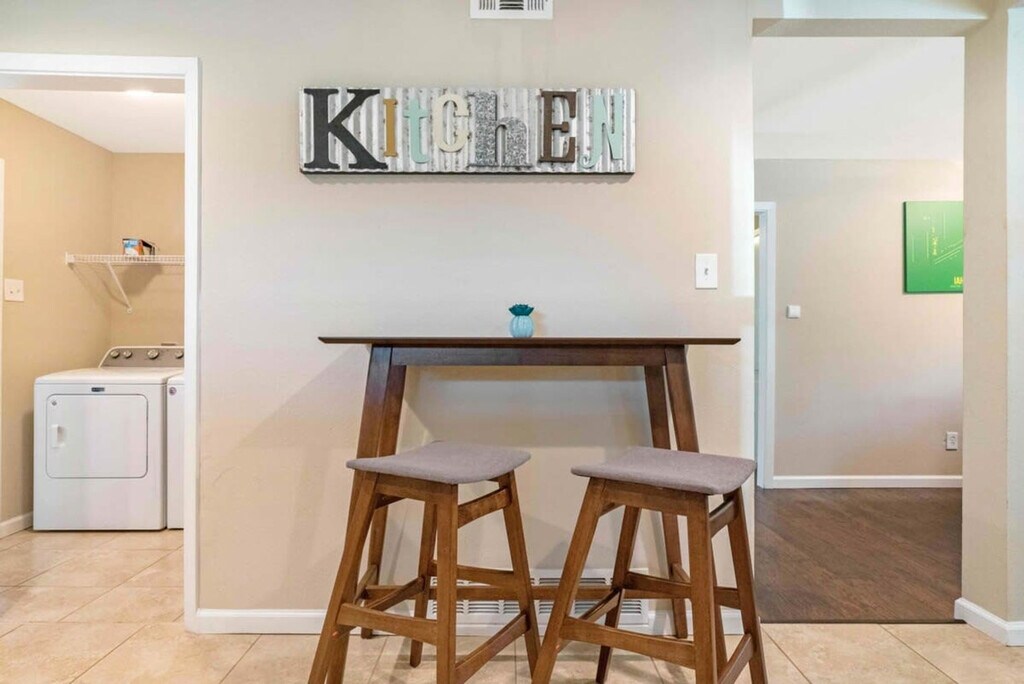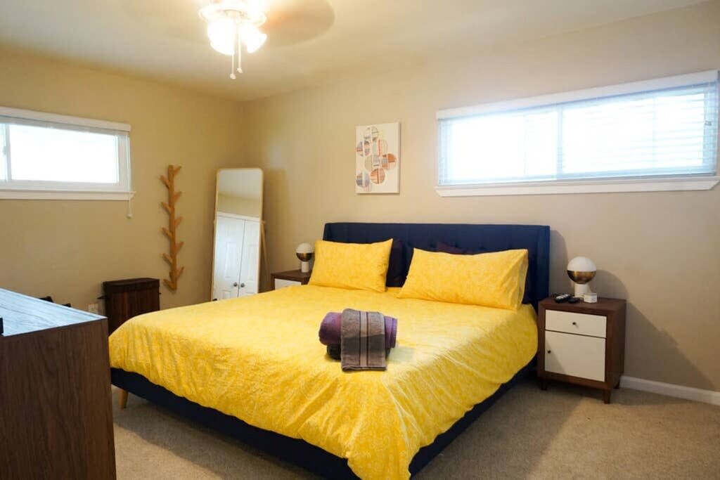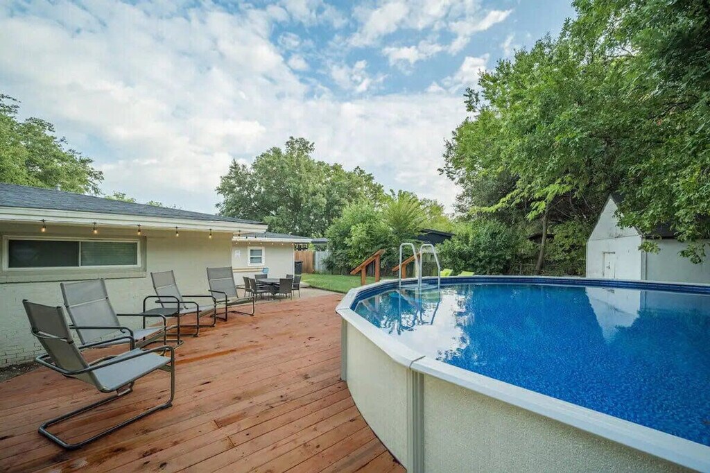 Welcome to your perfect accommodation in the DFW area, a beautiful and spacious home located in a quiet neighborhood of Irving, Texas. This fantastic house comfortably fits your whole group with 5 bedrooms and 2 bathrooms, offering a stunning backyard with a pool and ample parking out front. This home caters to both short-term and medium-term stays, making it an excellent choice for corporate housing needs. As you arrive at this beautiful bungalow rental, expect a fresh, clean, and modern home with vibrant décor and furnishings. Enjoy high-speed Wi-Fi throughout the home, a cozy living room with comfy couches, a fireplace, and a TV. The spacious kitchen features a small eating area with barstools and is fully equipped with appliances, silverware, and cookware. A laundry room with a washer/dryer is also available. This pet-friendly stay welcomes house-trained pets with a non-refundable pet fee of $150 per pet, with a maximum of 2 pets per stay. Please notify in advance to ensure a comfortable stay for you and your four-legged companions. Located in the Plymouth Park neighborhood of Irving, Texas, this home is just 10 minutes from DFW Airport, 17 minutes to downtown Dallas, and about 30 minutes to downtown Fort Worth. Enjoy nearby attractions such as Jaycee Park, Irving Lake, Epic Waters Indoor Waterpark, Ripley’s Believe It or Not Museum, AT&T Stadium, and Six Flags Over Texas. The Toyota Music Factory, Lake Carolyn, and the Mandalay Canal walk are also within close proximity. Only registered guests are allowed over while renting the property. Violations of the no-smoking policy are subject to a $450 fine plus the cost to clean, deodorize, and repair damages. Check-in is at 4pm and checkout is at 10am. The fireplace is gas-operated and should not be left unattended. Noise levels are monitored to comply with local ordinances. Small low-key gatherings are allowed only upon request and approval in advance. The home offers high-speed Wi-Fi, ensuring you stay connected during your stay. Registration Number: 001818 [SI]