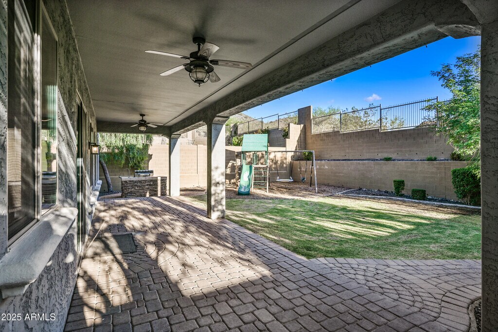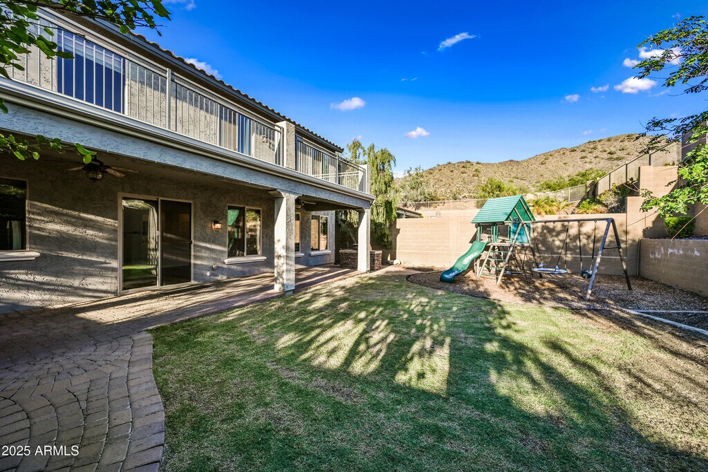 Beautiful 5 bed,4 bath home in the highly desired Fireside at Norterra community! Nestled in a quiet cul-de-sac within The Highlands,this 3,600+ sq ft home offers stunning mountain and sunset views. Features include wood flooring,designer finishes,updated appliances,and fresh paint throughout. The spacious primary suite boasts a walk-in closet,dual sinks,soaking tub,and private balcony. Enjoy resort-style amenities - pools,spa,fitness center,parks,and trails. The private backyard backs to NAOS and includes a covered patio,built-in BBQ,play area,lots of green grass! Minutes to shops,dining,and freeway access!