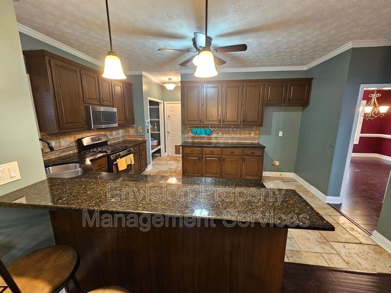 Welcome home to a 5-bedroom, 3.5 bathroom brick two-story on a finished basement. Step inside the front door and you'll find a foyer entry with mosaic stone floor and a formal dining room. The two-story family room includes a natural gas fireplace and features an abundance of natural light. In the kitchen you'll find granite countertops, stainless appliances, a breakfast bar, mudroom and walk-in pantry/laundry. The breakfast room overlooks a cozy covered deck. The oversized primary suite with tray ceiling is located on the main floor! The primary bathroom includes a double sink granite vanity, soaking tub, and a contemporary doorless walk-in shower. Upstairs you'll find three generous-sized bedrooms and a full bathroom. The basement includes a living room, full bathroom, exercise room, and a spacious bedroom with built-in bookcases and a sitting area. There is also an unfinished area with a boat door perfect for extra storage or a workshop. Home is located just minutes from the downtown McDonough Square, with easy access to I-75 and close proximity to grocery stores, retail shops and restaurants. Applications must be submitted on our website. All occupants over the age of 18 must apply. Fee is $70 per adult. $150.00 Admin Fee will be assessed at time of lease signing, and is due within 48 hours of approval. We do not advertise on Facebook or Craigslist