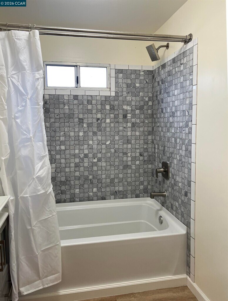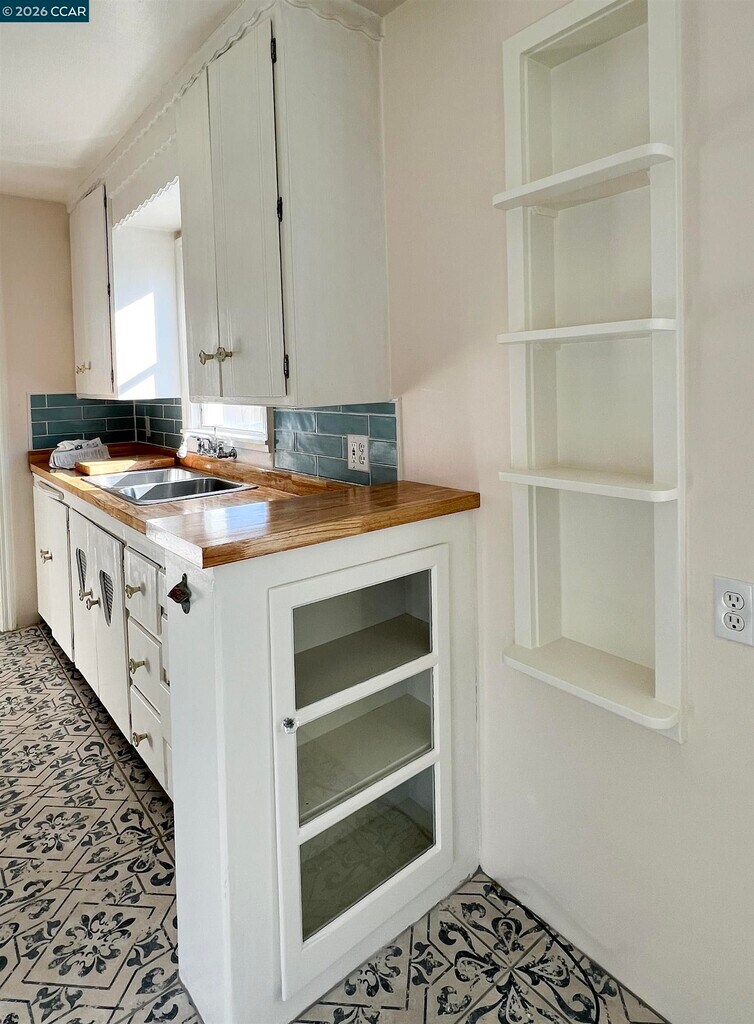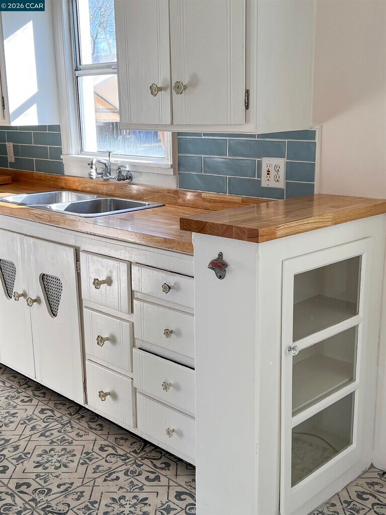 Old World Charm and so much new! Completely remodeled bathroom with new tub and fixtures,vinyl flooring and carpet,refrigerator,kitchen countertop,gas dryer and faux-wood blinds. Freshly painted with beautifully finished faux-painted living room and primary bedroom walls. Arched kitchen doorway,decorative plaster living room ceiling,picture window in living room,hallway cubby and gingerbread-trim kitchen cabinets reveal the home's original 1939 roots. Ceramic tile kitchen floor,gas range and breakfast nook finish off kitchen. Unusually large primary bedroom has its own entrance and sliding glass door. Middle bedroom is attached to primary bedroom making it perfect for a child's room or a home office. Big backyard and a 2-car detached garage. Fully fenced backyard. Sweet Sycamore-tree-lined street in quiet neighborhood. Walking distance to elementary school. One freeway exit from shopping and Costco. This highly desirable gem has been well cared for and currently in need of tenants who will continue the tradition. All utilities to be paid by tenant. Fireplace is decorative only.
