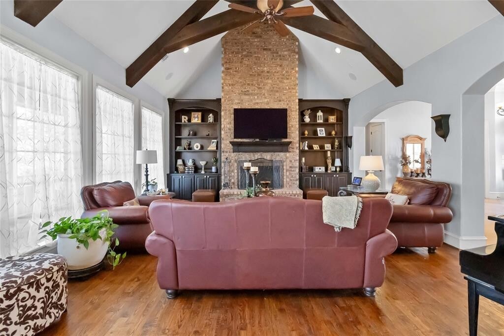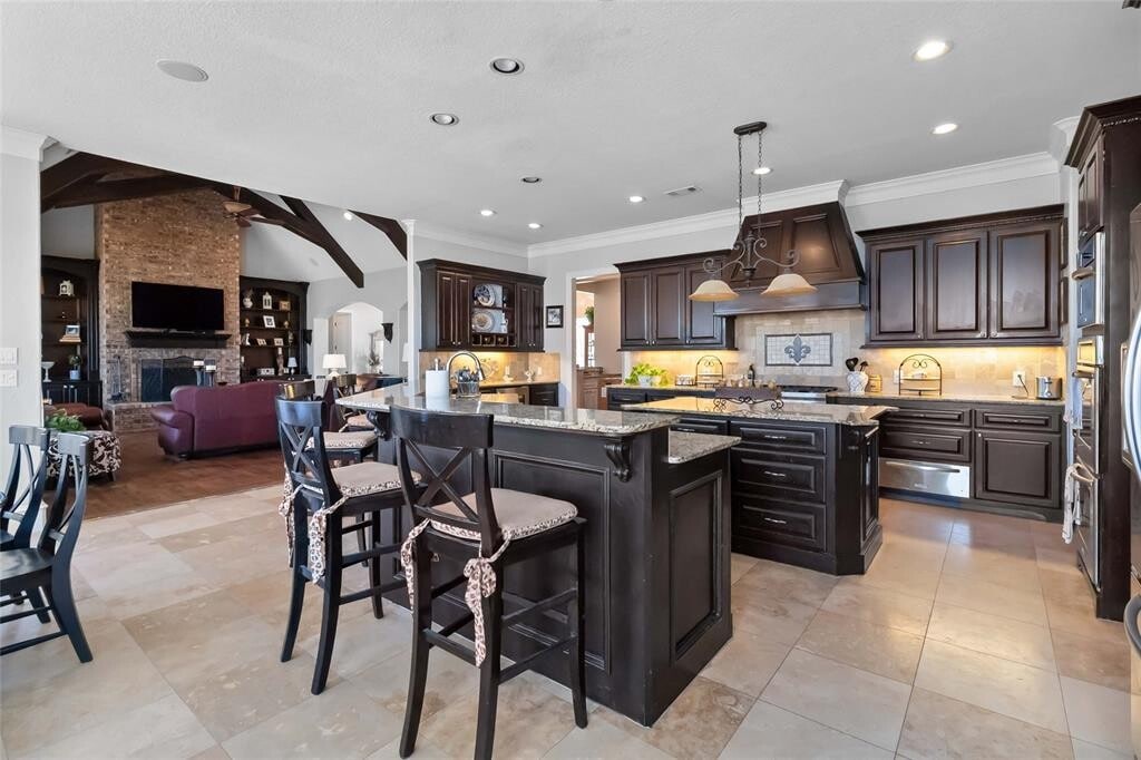 A truly remarkable place to call home. This elegant residence showcases refined details throughout, including crystal doorknobs, a Swarovski crystal chandelier in the formal dining area, and beautiful hardwood floors in all living areas and bedrooms. The kitchen and bathrooms are finished with timeless travertine tile. The home features an enormous gourmet kitchen equipped with KitchenAid Architect® II stainless steel appliances, granite countertops, abundant built-ins, and a huge pantry—perfect for both everyday living and entertaining. Additional highlights include a wet bar, 9-inch crown molding and baseboards, wainscoting in the study, and a custom-designed primary closet system. A full sprinkler system is included. Deposits will be collected once application is approved in certified funds. Full month’s rent due at move in - prorated due second month, if applicable. Pet fees are $500 PER PET + $25 PET RENT - no large breeds, no aggressive breeds - please don't ask. Service animals are not a pet. Please be sure to complete the Request for an Assistance Animal document attached to the listing and select the correct option when completing the pet screening. ALL APPLICANTS whether they have an animal or not must register at MLS ID 2798717