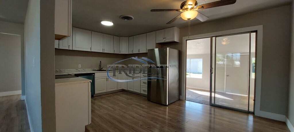 FRESHLY painted! NEW laminate flooring! NEW appliances! This is a 3 bedroom, 2 bath home, with a bonus room, located on a large lot. This home offers a living room and eat in dining. Kitchen offers stainless steel appliances, refrigerator, electric stove, dishwasher, and new cabinets. Interior laundry, central heat & air, and ceiling fans. Patio, storage shed and large backyard. 6 month lease. No pets and smoking.
