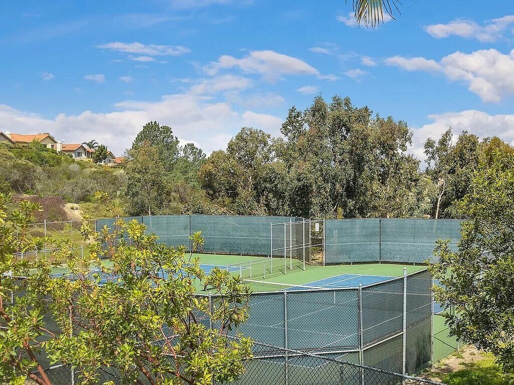 Beautiful cul de sac home with mountain views in the highly desirable community of Rancho Santa Fe Vista in Encinitas. The open floor plan offers 4bedrooms/3baths. This desirable 2-story property boasts hardwood floors throughout, soaring ceilings in the living and dining areas, updated appliances- refrigerator, dishwasher, washer and dryer, and epoxy-coated garage flooring with lots of storage in the 2-car garage. This 2355sf home includes one fireplace in the family room and has recessed lighting throughout main living areas and bedrooms. The large master suite has a custom 3 head shower and plenty of closet space. The living areas open up to a peaceful outdoor space in the backyard which overlooks the surrounding hills. There is a nice patio with a lighted pergola, perfect for entertaining. Enjoy the open grass area and community tennis/pickleball courts which are close to the property as well as the nearby playground. TOP RATED SCHOOL DISTRICT (Encinitas Union & San Dieguito High School Districts). This property is a MUST SEE!