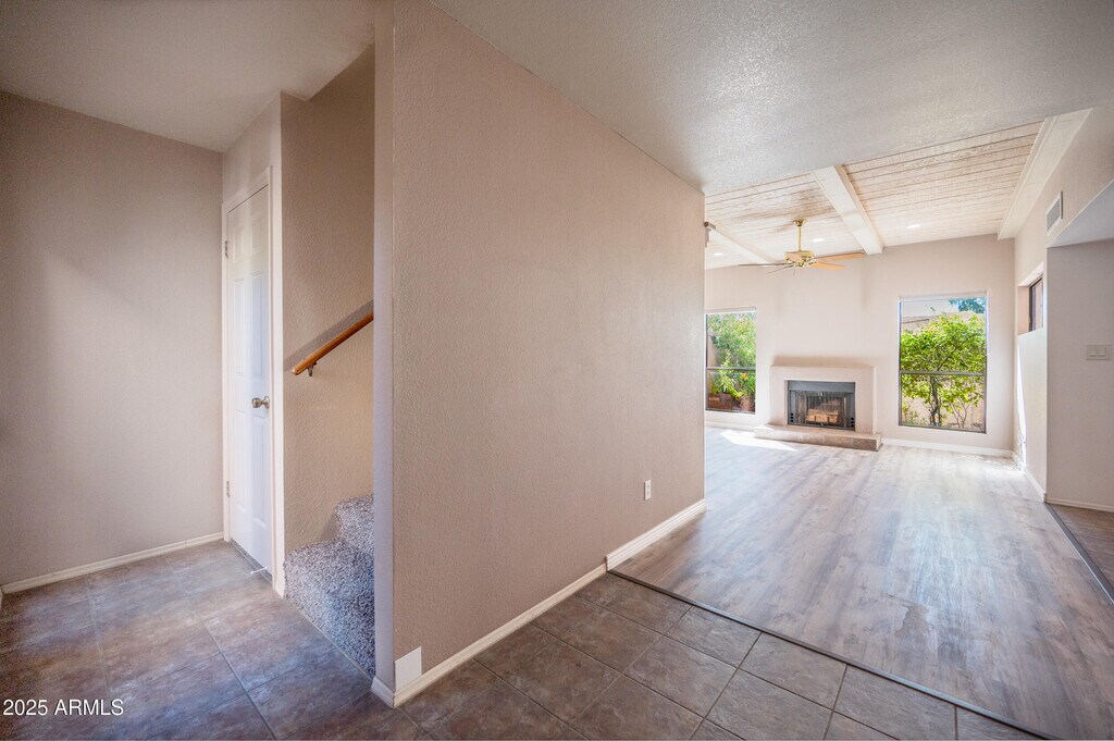 Ready to move in! Fresh new carpets upstairs! Spacious,quiet 2-story townhome near Piestewa Park. Vaulted ceilings with beams and wood-burning fireplace in great room (2nd fireplace upstairs). Formal dining with built-in cabinets. Kitchen features granite tile counters,recessed lighting on dimmers,and all appliances replaced in 2019. Primary suite has French doors to large balcony with Piestewa Peak views. Second bedroom includes two large closets,built-ins,and sitting area with Valley views. Entry from garage near laundry and kitchen. Covered brick patio off great room with storage shed and workbench. Blocks from canal and Granada Park,with easy Hwy 51 access and restaurants on 16th St and Biltmore.