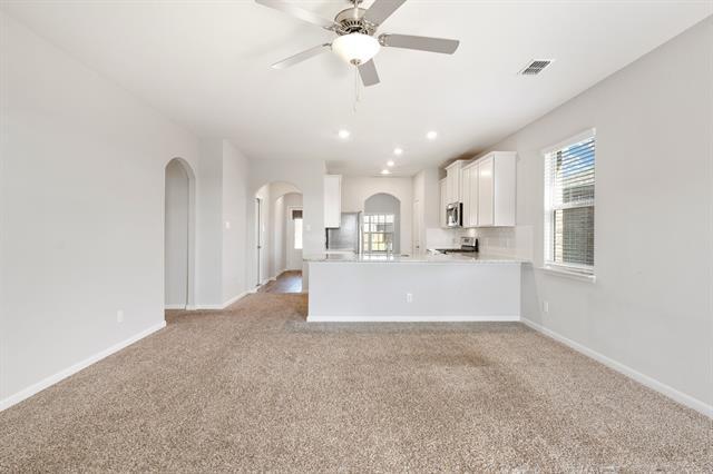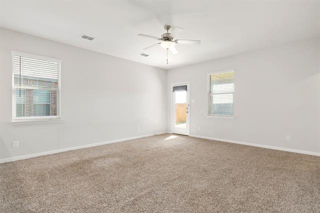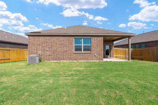 This single-story, three-bedroom, two-bath home is bursting with character and offers numerous desirable features. The kitchen, with its large granite island, opens to the living and dining areas and includes stainless steel appliances and a refrigerator. Both bathrooms are fully upgraded with granite counters. There are several storage rooms available for your convenience. Enjoy the Texas afternoon in the large covered patio with no rear neighbors, offering privacy and a peaceful setting. The home is within walking distance to Anna Middle School and High School, a playground, a community pool, and Slayter Creek Park. The dining room, located at the front of the home, is the perfect space for family meals. The open-concept kitchen and family room create an ideal area for entertaining. The master suite is a perfect retreat, featuring an en-suite bathroom with a large enclosed shower and a walk-in closet. Another highly coveted feature of this home is the covered patio.