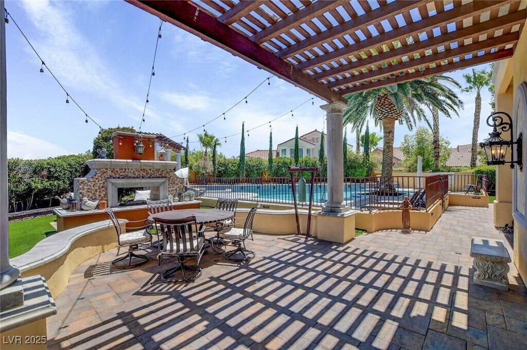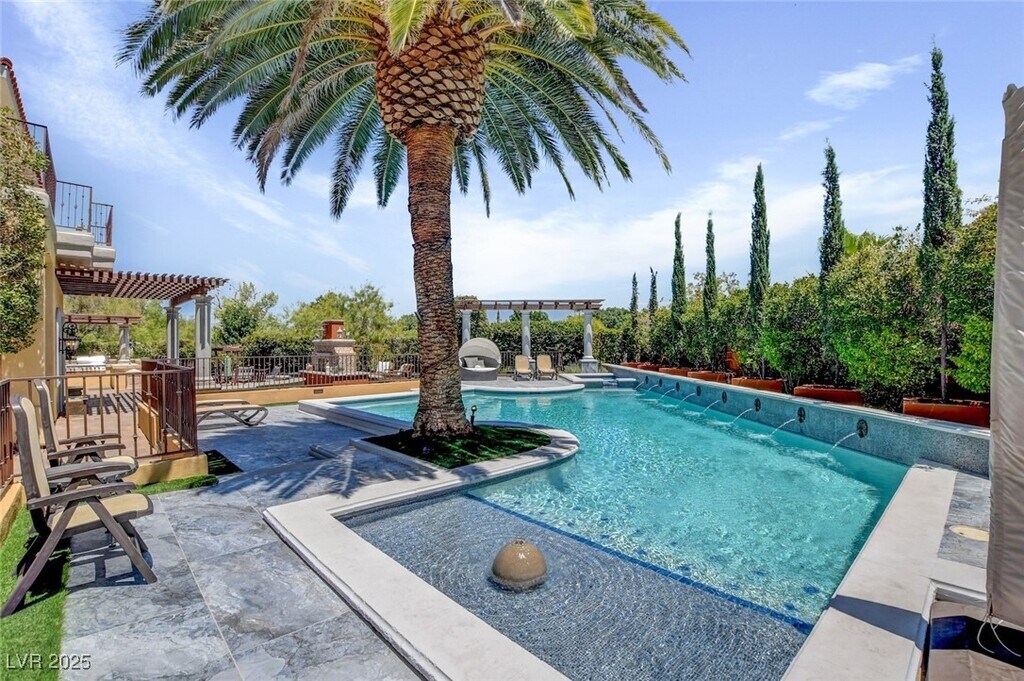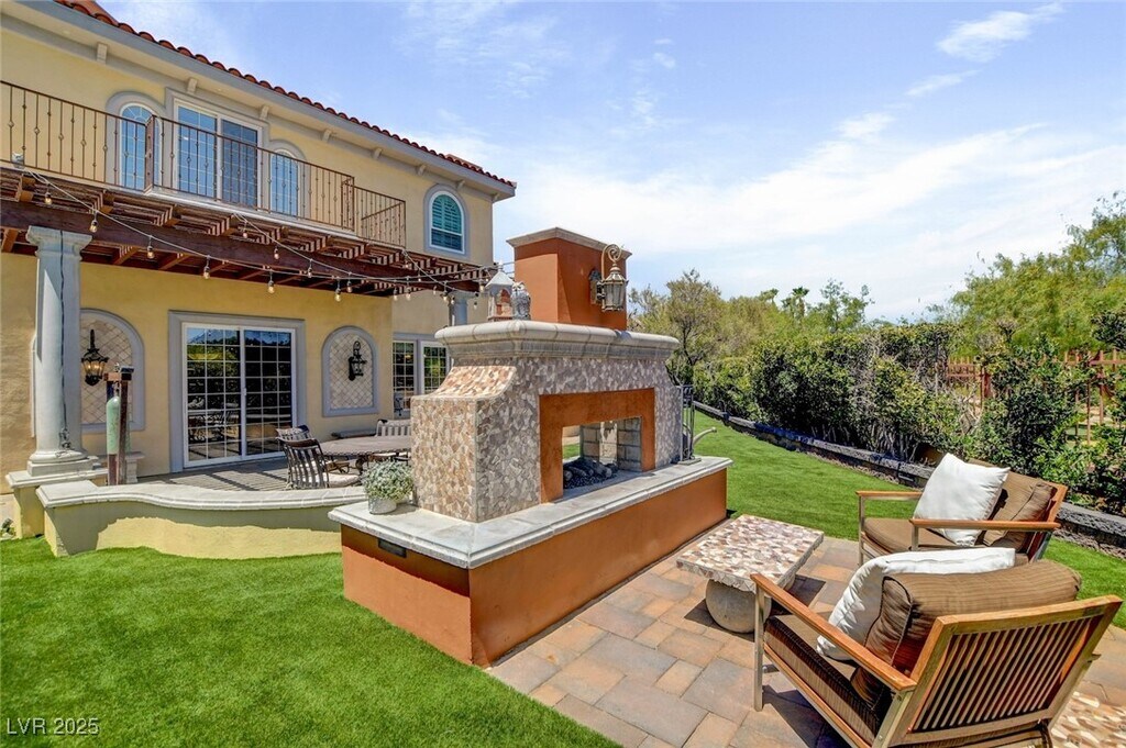 STUNNING CUSTOM GATED SUMMERLIN HOME*PRIME LOCATION NEAR DOWNTOWN SUMMERLIN*OVER 1/3 ACRE PRIVATE LOT - NO HOME BEHIND FOR ADDED PRIVACY*SPARKLING POOL & SPA WITH TANNING LEDGE & SUN DECK*MANICURED LOT WITH GATED COURTYARD ENTRY AND PATIO WITH BUILT-IN BBQ & OUTDOOR FIREPLACE*GORGEOUS, ROTUNDA ENTRY FOYER WITH DRAMATIC STAIRCASE*HOME FEATURES CUSTOM DESIGNER FINISHES THROUGHOUT, WITH STONE AND HARDWOOD FLOORS, UPGRADED LIGHTING, FANS & FIXTURES, CUSTOM PAINT, CUSTOM WOODWORK & BUILT-INS*5 FIREPLACES*ENTERTAINER'S KITCHEN WITH LARGE ISLAND, BREAKFAST BAR, PANTRY & VIKING APPLIANCES*DOWNSTAIRS BED & BATH*DOWNSTAIRS DEN WITH BUILT-INS*PRIMARY SUITE FEATURES A BALCONY, FIREPLACE, JETTED TUB, SEPARATE W/I SHOWER & OVERSIZED CLOSET WITH CUSTOM BUILT-INS*SIZEABLE GUEST BEDROOMS - ALL EN SUITE*MEDIA ROOM UPSTAIRS WITH WETBAR, PROJECTION SCREEN, TV & BALCONY*2ND OFFICE DOWNSTAIRS WITH GREEN" WALL FOR VIDEO PRODUCTION/ZOOM MEETINGS*POOL & LANDSCAPING SERVICE INCLUDED*FURNISHINGS ARE OPTIONAL*"
