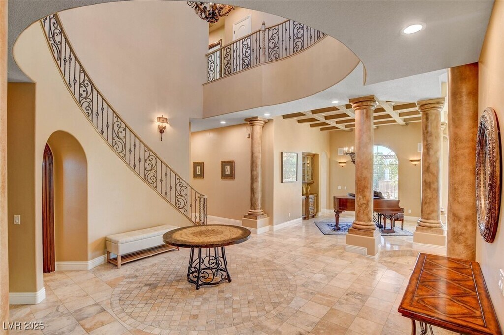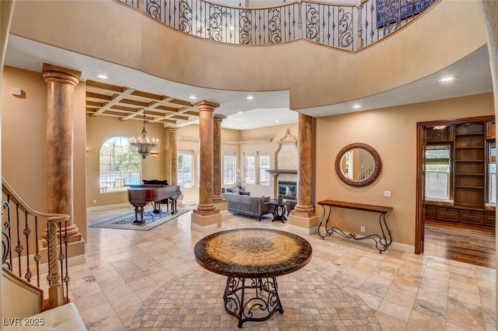 Melissa ZimbelmanSTUNNING CUSTOM GATED SUMMERLIN HOME*PRIME LOCATION NEAR DOWNTOWN SUMMERLIN*OVER 1/3 ACRE PRIVATE LOT - NO HOME BEHIND FOR ADDED PRIVACY*SPARKLING POOL & SPA WITH TANNING LEDGE & SUN DECK*MANICURED LOT WITH GATED COURTYARD ENTRY AND PATIO WITH BUILT-IN BBQ & OUTDOOR FIREPLACE*GORGEOUS, ROTUNDA ENTRY FOYER WITH DRAMATIC STAIRCASE*HOME FEATURES CUSTOM DESIGNER FINISHES THROUGHOUT, WITH STONE AND HARDWOOD FLOORS, UPGRADED LIGHTING, FANS & FIXTURES, CUSTOM PAINT, CUSTOM WOODWORK & BUILT-INS*5 FIREPLACES*ENTERTAINER'S KITCHEN WITH LARGE ISLAND, BREAKFAST BAR, PANTRY & VIKING APPLIANCES*DOWNSTAIRS BED & BATH*DOWNSTAIRS DEN WITH BUILT-INS*PRIMARY SUITE FEATURES A BALCONY, FIREPLACE, JETTED TUB, SEPARATE W/I SHOWER & OVERSIZED CLOSET WITH CUSTOM BUILT-INS*SIZEABLE GUEST BEDROOMS - ALL EN SUITE*MEDIA ROOM UPSTAIRS WITH WETBAR, PROJECTION SCREEN, TV & BALCONY*2ND OFFICE DOWNSTAIRS WITH "GREEN" WALL FOR VIDEO PRODUCTION/ZOOM MEETINGS*POOL & LANDSCAPING SERVICE INCLUDED*FURNISHINGS ARE OPTIONAL*