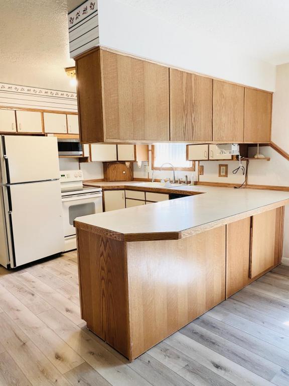 This 5 Bedroom 3 Bath brick home has a Large two car garage, a workshop area in the back, Covered front porch, and a large open back deck, a spacious backyard, and a garden area. Inside you will find 3 bedrooms 2 bathrooms on the main level, new LVT flooring in the bathrooms, dining and kitchen area. New paint carpeting in the basement family rooms, two wood burning fireplaces, builtins, and a large dining room. Laundry is located downstairs along with a spacious bedroom, bathroom and two large family rooms one of which is being used as a bedroom. NO PETS/ NO SMOKING Call for more information or to schedule a tour. This property is located in Ammon ID. Security deposit includes a $100 non refundable lease initiation fee.