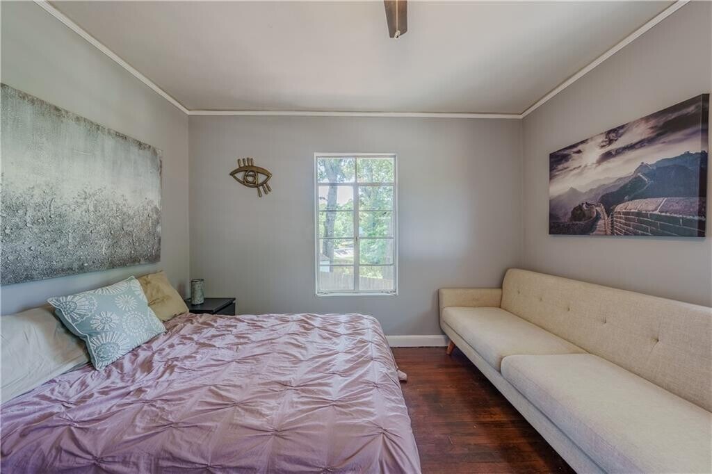 Everything in the home conveys—furniture,kitchenware,bedding,and décor—making it completely move-in ready or an instant Airbnb opportunity. This charming and well-maintained Mid-Century Ranch features 2 spacious bedrooms,a versatile 3rd flex room,and a light-filled bathroom. The bright living room and well-appointed kitchen are ideal for relaxing or entertaining. Enjoy the screened-in covered porch and a large,serene yard on a corner lot with potential for an additional dwelling unit (ADU). Located in a desirable East Point neighborhood,just 3.1 miles from Hartsfield-Jackson Airport,with easy access to local parks,schools,and amenities. Don’t miss this rare opportunity—check out the 3D tour and schedule your showing today!