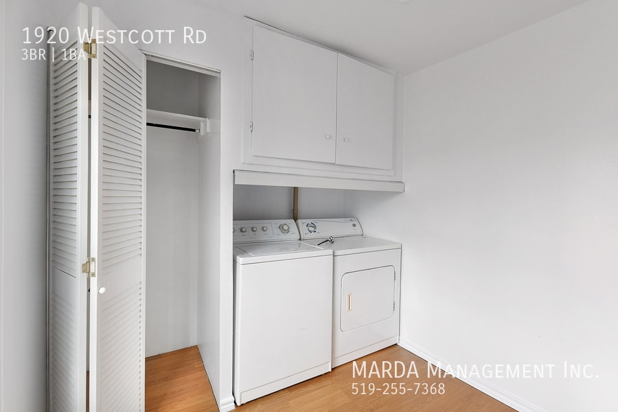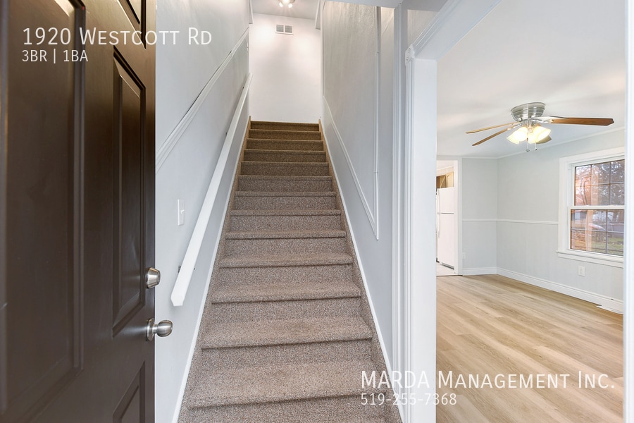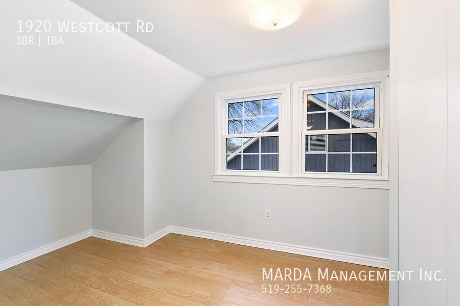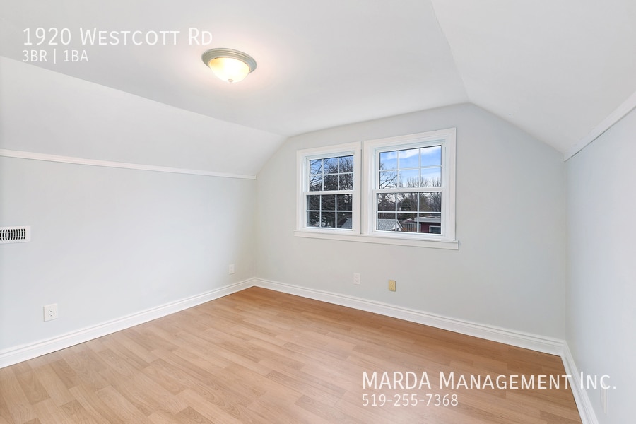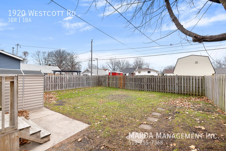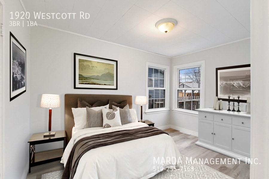 Welcome to 1830 Westcott. This three bedroom, one bathroom modern and bright bungalow is located in East Windsor: walking distance to several parks, Ford City Public School, W.F. Herman Academy Secondary, and around the corner from all of the shops, restaurants, and amenities of Tecumseh Rd. East. The front door leads you into your living room, where a huge, front-facing window floods the space with natural light. Beautiful and modern laminate floors throughout. The kitchen offers an endless amount of cabinetry and counter space, as well as modern appliances, including a full-sized fridge/freezer, electric stove, and a dishwasher. Ceramic tile throughout, a huge, walk-in pantry, and plenty of extra space for a dining table. Beautiful glass sliders lead you out onto your back deck, and into your huge, partially fenced in yard; perfect for entertaining. The main floor washroom features a tub shower combo, as well as plenty of storage space in the vanity. One bedroom on the main floor, and two more bedrooms upstairs all offer plenty of closet space. This home also features in-suite laundry on the main floor, central AC, and driveway parking for two. Tenant responsible for hydro, gas, water, lawn care, and snow removal. One-year minimum lease. First and last months rent and a credit check are required. Professionally managed by MARDA Management, offering 24/7 maintenance support with live agents and easy rent payment options. Call MARDA MANAGEMENT today at or email to schedule your viewing! Freshly Painted Front Porch Laminate Flooring No Smoking Allowed Pet Friendly Pet Friendly Building