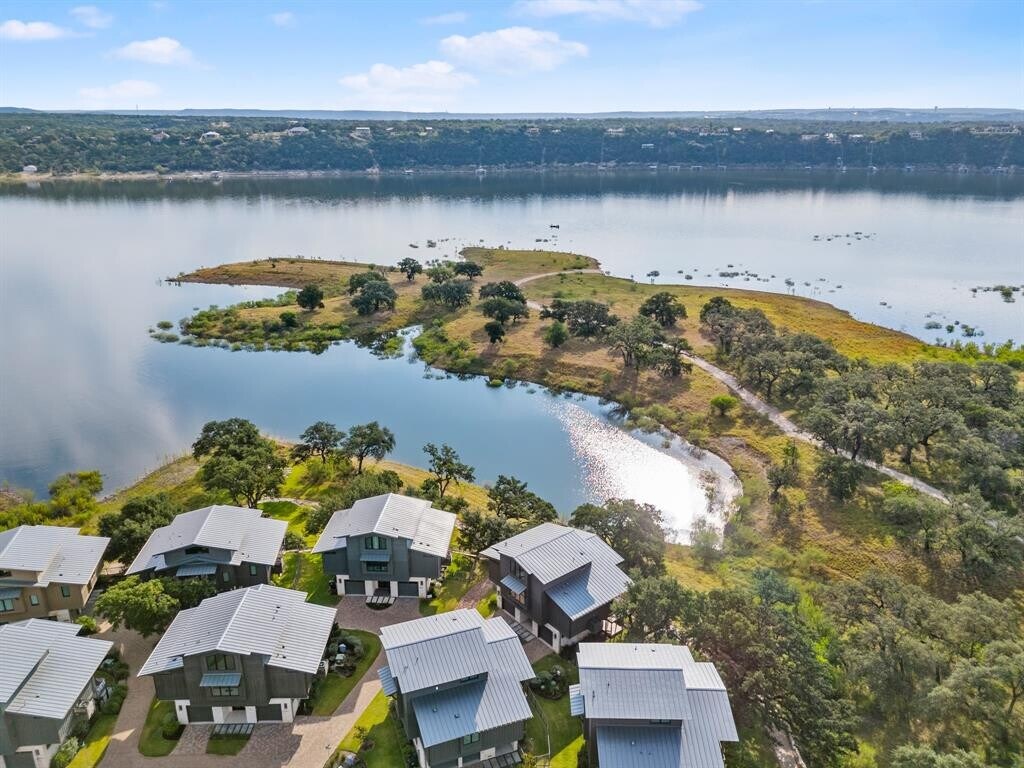 Introducing 19201 Crusoe Cove #20—an extraordinary modern waterfront home available for lease fully furnished, offering a turnkey opportunity to enjoy the very best of Lake Travis living. Flexible lease terms are available. While 12-month or longer leases are offered at the advertised rate, a 6-month lease is available, subject to approved terms. Set in the highly coveted Reserve at Lake Travis, this rare gem offers true, direct lake access and sweeping, uninterrupted views of the shimmering water and surrounding hill country—just moments from the vibrant energy of Austin. Inside, a light-filled, open-concept layout welcomes you with a seamless flow between the spacious living area and the gourmet kitchen, which features shaker-style cabinetry, quartz countertops, and high-end stainless steel appliances. Step outside to the expansive patio, complete with a fire pit and breathtaking panoramic views—ideal for relaxing or entertaining after a day on the lake. The main level includes two spacious bedrooms, each with its own en-suite bath and custom finishes. Upstairs, a third bedroom and full bath are joined by a versatile bonus room—perfect for a home office, guest space, or bunk room, all with elevated views. Residents enjoy access to The Reserve’s resort-style amenities, including an infinity pool, lazy river, lakeside lodge, tennis courts, private marina, fish pond, and The Barn for community events. A private stairway also leads to a scenic walking path through nature. The property includes a two-car garage and private driveway for added convenience. Whether you're seeking a peaceful waterfront escape or a stylishly furnished long-term home, 19201 Crusoe Cove #20 delivers an exceptional lakeside lifestyle.