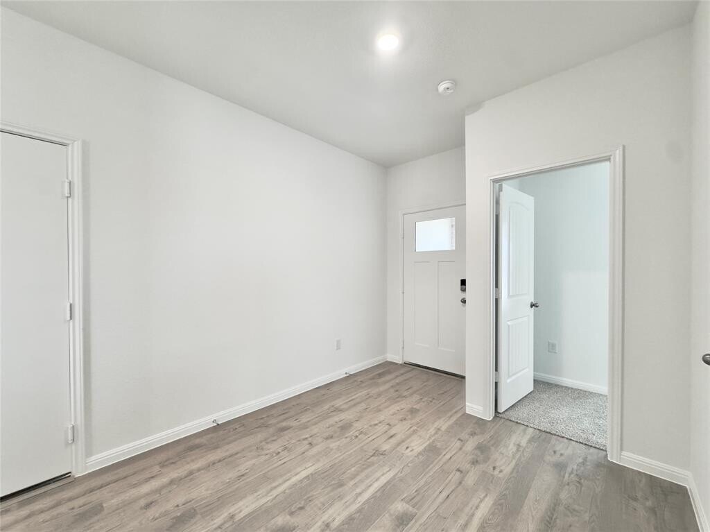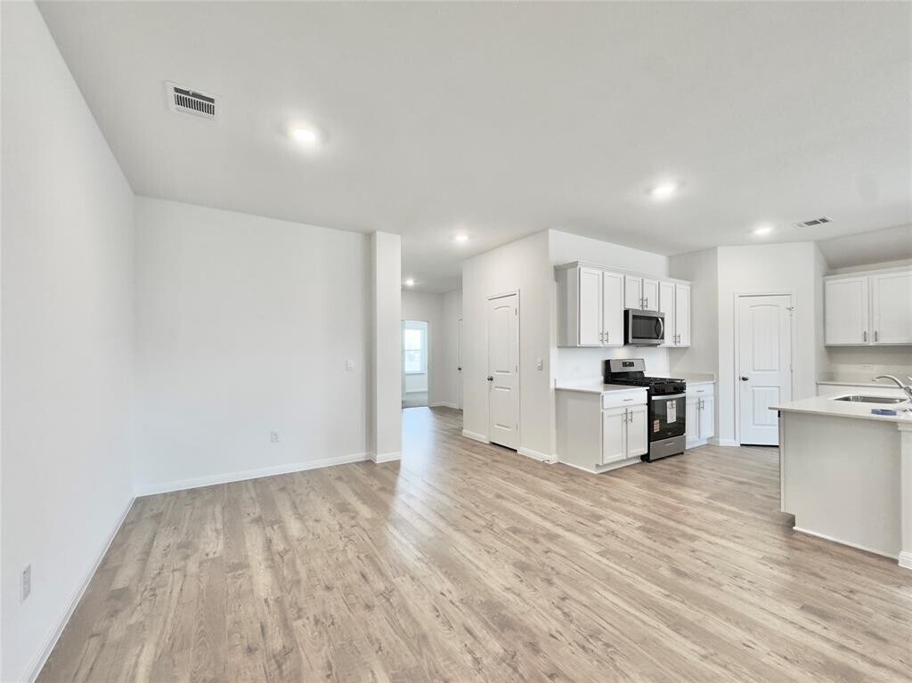 New 2025 lease home ready for immediate move in *Excellent location in award winning Bar W. Ranch Subdivision. Open & spacious, this entertainer's delight connects you with your environment via open bar top seating, views overlooking an open kitchen concept with extended covered back patio living and private backyard. Flex room right off entry is ideal for any home office or formal dining. Home comes with new refrigerator, washer & dryer package. High ceilings, light and bright quartz countertops, 42" tall upper cabinets, stainless steel appliances really make this model shine. Primary en-suite features a roomy bathroom with a double vanity and walk-in shower. Relax and enjoy the outdoors on the Texas sized back covered patio/porch. Pre-wired with smart home features: Video doorbell, Honeywell T6 Pro Z-Wave Thermostat, Qolsys IQ Panel, Amazon Echo Pop, Kwikset Home Connect 620, Deako Smart Switch. Conveniently located near the new HEB at Ronald Reagan and 183A Tollway for a quicker commute.