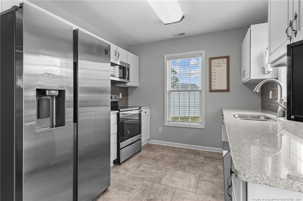 This beautifully maintained 4-bedroom, 2.5-bath home sits on a spacious corner lot with a fully fenced backyard, perfect for families and outdoor activities. Located just 15–20 minutes from Fort Bragg and close to shopping, it offers hardwood floors throughout, a large kitchen with stainless steel appliances and quartz countertops, and a cozy gas fireplace in the living room. The first-floor primary suite provides privacy, while the upstairs includes three additional bedrooms, including a bonus room that can be used for a variety of purposes. Notable upgrades include a dual-zone HVAC system (installed in Fall 2022), roof replaced in Fall 2018, vinyl privacy fencing added in 2024. With a two-car garage, ample storage, and a move-in-ready layout, this home is an excellent choice for comfort and convenience. Homeowners offering $8k in concessions for floor refinish or use as you choose, if you choose to purchase. Option to purchase available, contact listing agent for more information. Please apply at or to schedule a viewing reach out to and we will be happy to assist.