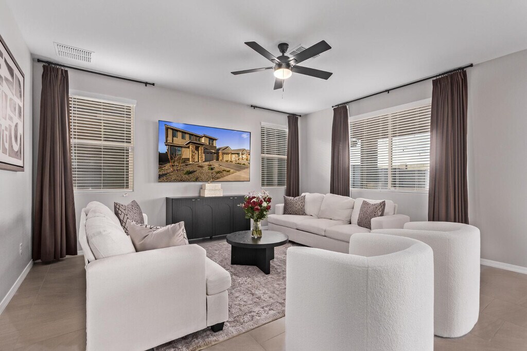 Welcome to the Arlington! This charming 5 bedroom 3 bath home features a cozy upstairs loft,perfect for entertainment. As you enter,the foyer creates a warm and inviting atmosphere,leading into a spacious great room that's ideal for both holiday celebrations and quiet nights. The stunning open-concept kitchen boasts generous countertops and a walk-in pantry for ample storage. Step outside to the extended covered patio,where you can relax and take in the breathtaking views of the White Tank Mountains. MLS ID 7018154