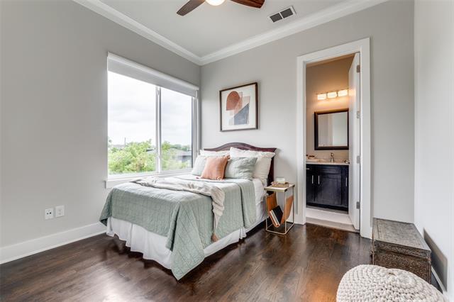 Experience elevated urban living in this beautifully updated East Village townhome in Dallas. This end-unit offers added privacy and abundant natural light, featuring 2 spacious en-suite bedrooms, a dedicated work-from-home space, and an open-concept layout ideal for modern living. The kitchen is designed for both function and style with hardwood floors, ample cabinetry, and a seamless flow into the main living and dining areas which is perfect for everyday living or entertaining. Recent updates and energy-efficient features add comfort and peace of mind. Enjoy a private rooftop patio with city views that are ideal for relaxing evenings or hosting guests. Located just minutes from Deep Ellum, Lower Greenville, Knox Henderson, and Downtown Dallas, this home offers convenient access to some of Dallas’ top dining, shopping, and entertainment destinations. Community amenities include a private dog park and maintained common areas. Low-maintenance living in a prime Dallas location with strong accessibility and lifestyle appeal. Elevate your lifestyle with this exceptional urban retreat, where every detail is thoughtfully designed for convenience, comfort, and effortless luxury.