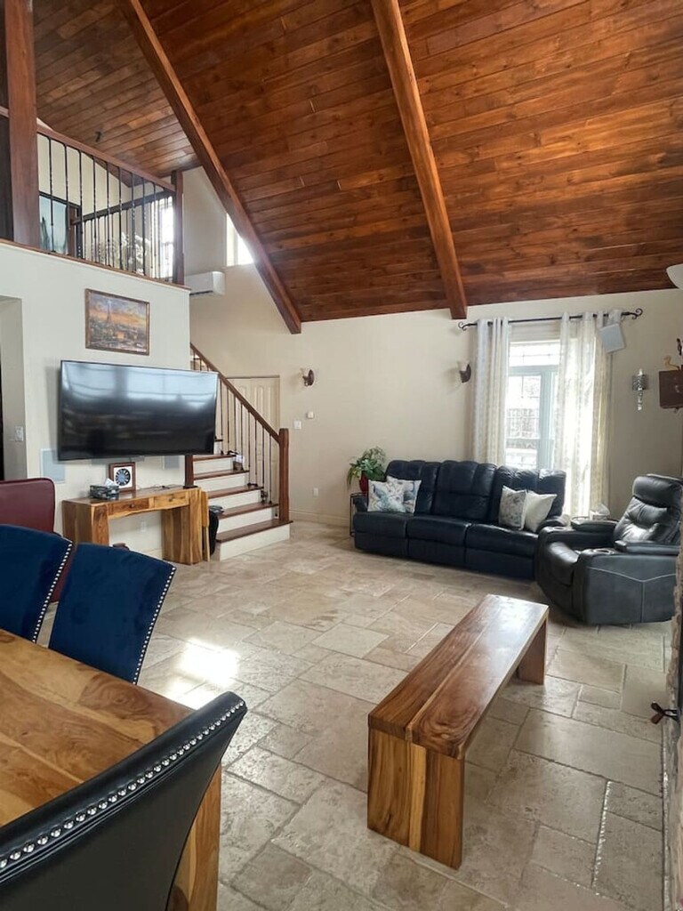 The advertised rate of C$7,837/month is the lowest available price, based on a 1 month(s) stay with a move-in date of November 15, 2026. Rates vary depending on the duration of stay, season, and other parameters. For exact pricing and additional pricing components, please visit our website and enter your desired move-in and move-out dates. The rate is applicable when billed upfront; it can be higher if billed in multiple payments. Feel at home in this stunning waterfront retreat located between Montreal and Ottawa, designed for up to 12 guests across two unique spaces: a main house and an all-season bunkie. This property offers the perfect balance of togetherness and privacy, ideal for families or groups. The main house features a cozy living area with a fireplace, a fully equipped kitchen, and beautiful water views. The bunkie offers its own living space and unique design touches, including a New York-style spiral staircase and lofted bedroom. Amenities include high-speed Wi-Fi, a smart TV, a washer and dryer, a hot tub, a large dock, water toys, a gazebo, a barbecue, a firepit, fresh linens and towels, and starter essentials such as coffee, cooking oil, salt and pepper. Pets are allowed with prior approval only and must be supervised at all times and not left unattended. Please clean up after your pet and keep them off furniture unless covered. Explore Parc national de Plaisance for hiking, biking, kayaking, and wildlife watching. Enjoy kayaking, paddleboarding, or swimming right from the property. Discover local beaches and scenic picnic spots along the Ottawa River. Visit nearby trails for walking, cycling, and nature escapes. Take a short drive to Montebello for restaurants, cafés, and shops, and visit the iconic Fairmont Le Château Montebello for dining or a spa day. Maximum of 10 registered guests are allowed at all times, and any additional visitors must be approved in advance. No parties, events, or large gatherings are permitted. Quiet hours are from 10:00 PM to 7:00 AM. Please be respectful of neighbours and the peaceful nature of the area. No smoking or vaping is allowed inside the home or bunkie. If smoking outside, please dispose of cigarette butts properly. Use of the hot tub, swimming, and use of water equipment are at your own risk. Failure to respect house rules may result in additional fees or termination of the stay. Includes a dedicated workspace. [SI]