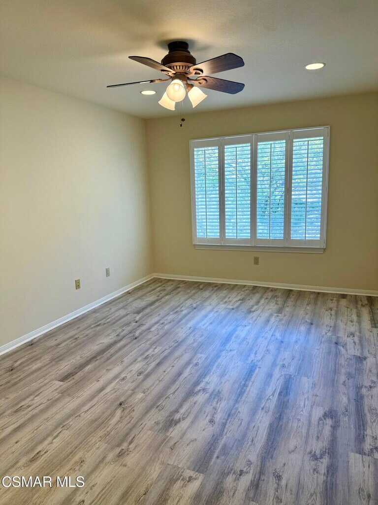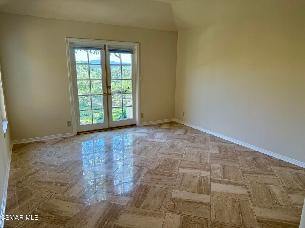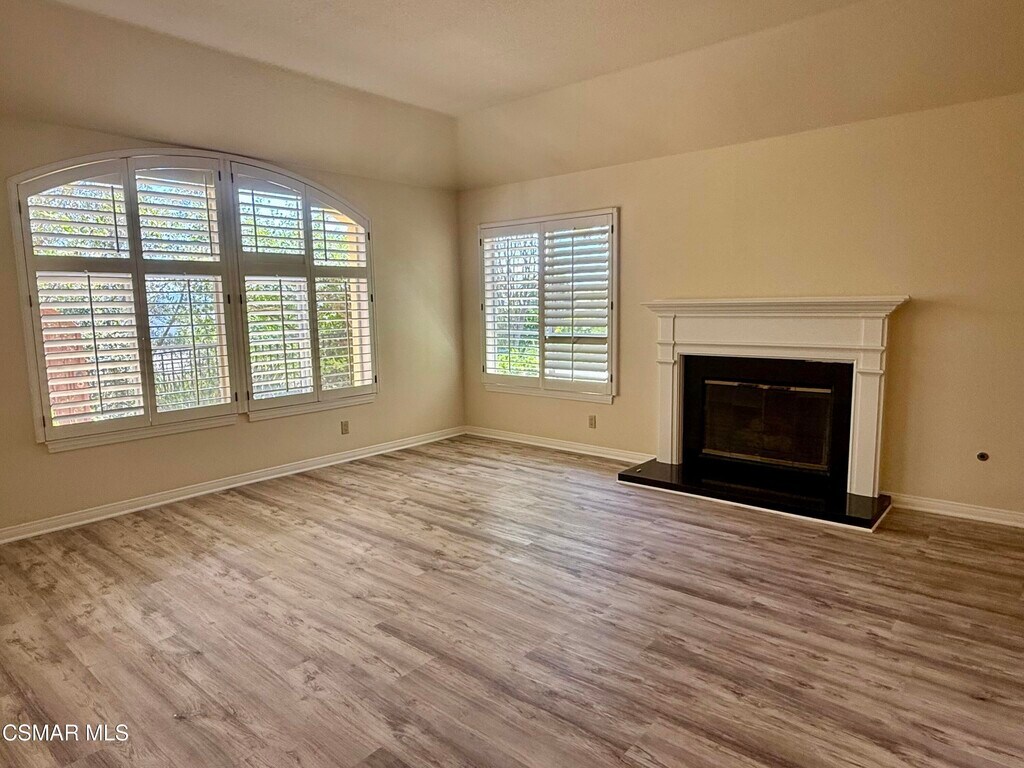 Amazing views from this North Ranch home, located at the end of a cul-de-sac. This six bedroom, four bathroom retreat is almost 4,000sf with a downstairs primary suite. The kitchen has granite counters, stainless appliances including refrigerator, double oven, microwave, dishwasher & trash compactor and a center island w/countertop seating. The open floorplan includes a family room with vaulted ceilings, a fireplace, & French door access to the backyard and pool. Just off the kitchen is the formal dining room with French doors leading to the private front yard. Just off the entry is both a formal living room with fireplace & bar area, including a wine refrigerator and a separate open library or office space. The primary suite is located on the main floor, with its own fireplace. The large primary bathroom includes a double vanity, large bathtub and separate shower and dual walk-in closets. There are two additional downstairs bedrooms with a shared dual entry bathroom as well as a powder room for guests. Upstairs are three additional bedrooms, one of which has a private exterior entrance, as well as a full bathroom. Features include HVAC, fresh paint, marble & wood-like flooring, built in cabinetry, plantation shutters, wrought iron banister and ceiling fans. The inside laundry room includes a washer & dryer and sink and direct access to the private three car attached garage, with additional driveway parking. Nestled on a 32,000sf lot, with amazing views of the area mountains, the private backyard has a swimming pool, spa, patio, and grassy area to enjoy the beautiful weather year round.