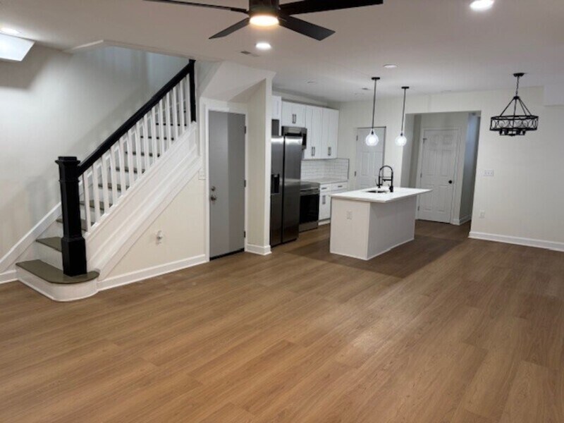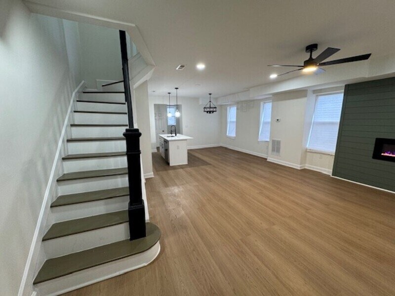 Unit 1 – Move-In Ready! Welcome to this fully renovated 3-bedroom, 2.5-bath townhouse located in a multi-unit property in the Mondawmin area. This modern home features stylish fixtures, high-end finishes, recessed lighting, and thoughtful design throughout. The main level offers an open-concept floor plan with a bright and inviting living room highlighted by a sleek electric wall fireplace, perfect for relaxing or entertaining guests. The dining area flows seamlessly into a contemporary kitchen equipped with white shaker cabinets, quartz countertops and backsplash, and stainless steel appliances. A convenient half bath completes the main level. Washer and Drying Hook-up off of the kitchen. Enjoy vinyl flooring throughout the first floor and carpeted bedrooms upstairs. The home includes central air and a two-car parking pad at the rear. Upstairs, you'll find three spacious bedrooms, including a primary suite with a beautifully tiled en-suite bathroom. The two additional bedrooms share a modern Jack-and-Jill bath. Additional Details: • Basement not included • Utilities split 2/3 between tenants • Convenient access to public transportation, MARC Train, and Coppin State University • Vouchers and Section 8 welcome! Don't miss your opportunity to call this modern gem home — schedule your showing today! Unit 1 – Move-In Ready! Welcome to this fully renovated 3-bedroom, 2.5-bath townhouse located in a multi-unit property in the Mondawmin area. This modern home features stylish fixtures, high-end finishes, recessed lighting, and thoughtful design throughout. The main level offers an open-concept floor plan with a bright and inviting living room highlighted by a sleek electric wall fireplace, perfect for relaxing or entertaining guests. The dining area flows seamlessly into a contemporary kitchen equipped with white shaker cabinets, quartz countertops and backsplash, and stainless steel appliances. A convenient half bath completes the main level. Washer and Drying Hook-up off of the kitchen. Enjoy vinyl flooring throughout the first floor and carpeted bedrooms upstairs. The home includes central air and a two-car parking pad at the rear. Upstairs, you'll find three spacious bedrooms, including a primary suite with a beautifully tiled en-suite bathroom. The two additional bedrooms share a modern Jack-and-Jill bath. Additional Details: • Basement not included • Utilities split 2/3 between tenants • Convenient access to public transportation, MARC Train, and Coppin State University • Vouchers and Section 8 welcome! Don't miss your opportunity to call this modern gem home — schedule your showing today!