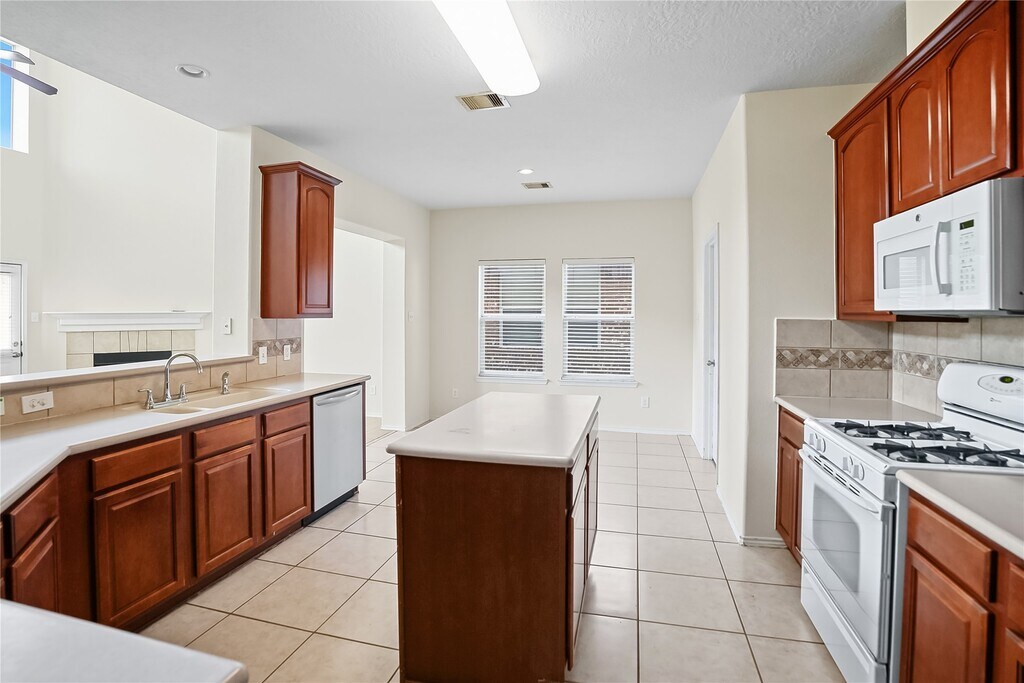 This beautiful 4 bed 2.5 bath has a beautiful curb appeal with a welcoming covered front porch. Step inside to a grand foyer with soaring ceilings and elegant tile& vinyl flooring. A graceful arched entry leads you to a formal dining room,perfect for entertaining.The gourmet island kitchen features sleek Silestone countertops,42” cabinetry,gas cooktop,built-in microwave,and stylish tile backsplash Adjacent is a spacious breakfast area with plenty of natural light and fireplace.The private first-floor primary suite includes a luxurious bath with whirlpool tub,dual vanities,and a large walk-in closet.Upstairs,you'll find a flexible game room and generously sized secondary bedrooms,all with neutral paint and vinyl flooring. Enjoy the peaceful backyard with a relaxing patio space.Located in the sought-after Klein ISD with convenient access to I-45,the Grand Parkway,Beltway 8 and IAH Airport . No pets allowed. MLS# 987994