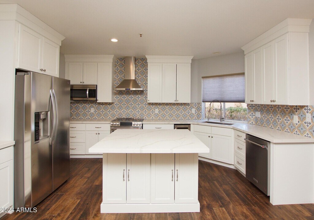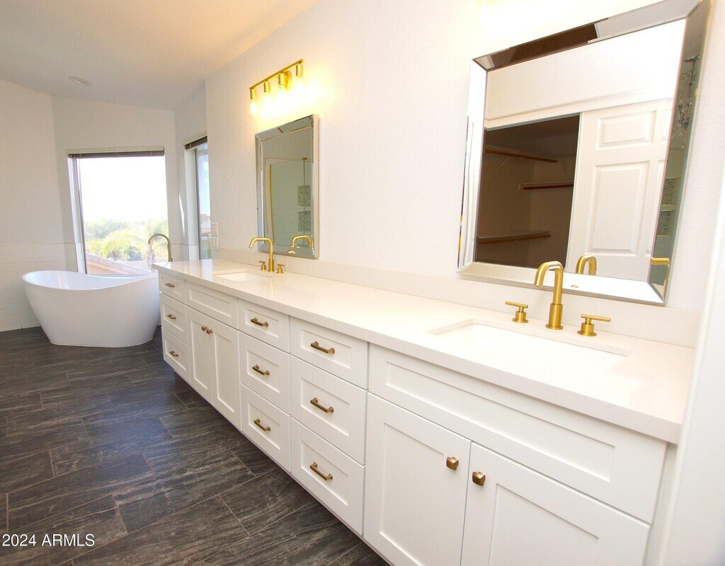 Premier Scottsdale location overlooking a desert wash w/ Open floor plan & soaring ceilings.. this 5 bedroom home has a bedroom and full bath on the first level.. great room w/wood burning fireplace & dine in kitchen. upgraded flooring,remodeled kitchen w/ stainless appliances,added wine fridge & much more- Upgraded bathrooms,..Painted in a modern color palette w/ large baseboards,updated lighting & ceiling fans- Rent includes pool and yard maintenance.