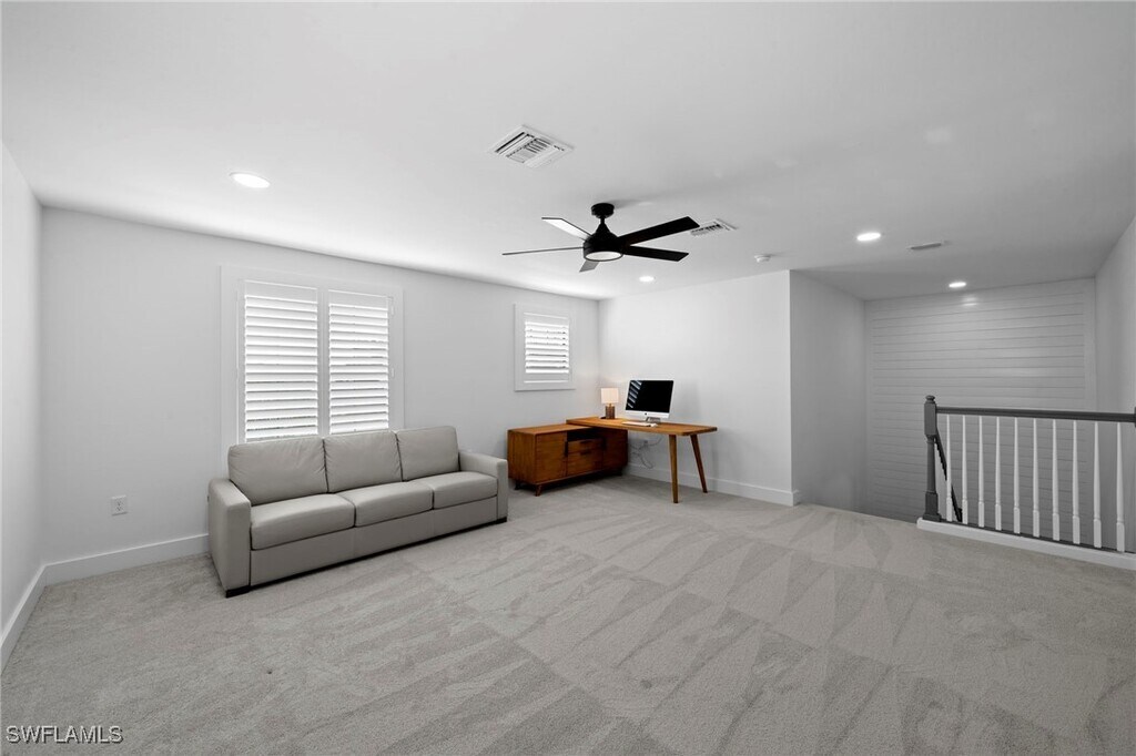 AVAILABLE NOW FOR SEASON! JANUARY,FEBRUARY,MARCH & APRIL AVAILABLE! HIGH END FINISHES! You do not want to miss the opportunity to call this spectacular 4 bed,3 FULL bath,POOL home your winter residence. Incredibly upgraded and meticulously maintained,you'll be impressed from the moment you arrive. Inside,you'll find custom woodwork accents and plantation shutters throughout with modern,plank tile flooring on the ground floor and plush carpeting upstairs. The spectacular kitchen features a gorgeous centerpiece waterfall island,built-in cabinetry with glass uppers,tile backsplash and stainless steel appliances. The ground floor is complete with a guest bedroom,formal dining area,expansive family room and a full guest bath with a mosaic tile,glass-enclosed shower. A generous loft welcomes you upstairs where you'll find an expansive primary suite with an en-suite bath including a beautiful soaking tub,two additional bedrooms and an additional full bath. Both baths feature dual vanities. For a place to unwind,step outside to the screened lanai surrounded by privacy hedging with NW rear exposure,the perfect place to enjoy the perfect year-round weather of Southwest Florida. Located in The Place at Corkscrew,a premier gated community just two miles east of I-75,residents enjoy access to an abundance of amenities including basketball,bocce,resort-style pool with spa and cabanas,clubhouse,fitness center,pickleball,tennis,volleyball and more. Seasonal leases include utilities,lawn care and access to all of the amenities The Place at Corkscrew offers. Available for annual lease if desired.