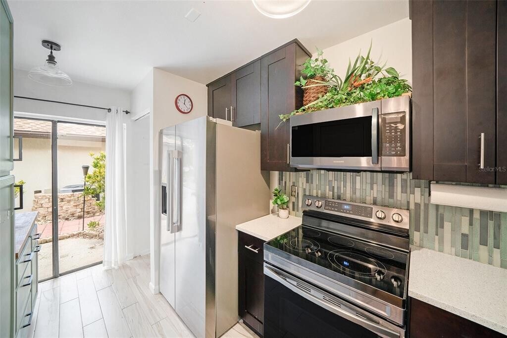 Adorable One-Story Villa for Rent in Safety Harbor – Short Stroll to Philippe Park! Upgraded villa available for lease in Safety Harbor. Step inside to find an open floor plan with brand-new flooring (2024) and abundant natural light. The kitchen features dark cabinets with soft-close drawers,quartz countertops,stainless steel appliances,and sliding doors leading to your private patio. The primary suite offers a relaxing retreat with a stylish bathroom and walk-in closet. Enjoy the outdoors from the screened-in patio overlooking a fenced yard—perfect for your pets! Additional highlights include a 1-car garage with extra storage and access to the community’s pool,tennis courts,and outdoor grilling area. What truly sets this rental apart is its unbeatable location—just a short stroll from Philippe Park,where you can explore scenic trails,picnic,or simply unwind surrounded by nature. Plus,you’re close to Safety Harbor’s charming downtown,known for its restaurants,shops,festivals,and 3rd Friday celebrations. Conveniently located near beaches,airports,and all the best of the Tampa Bay area. MLS# TB8437059