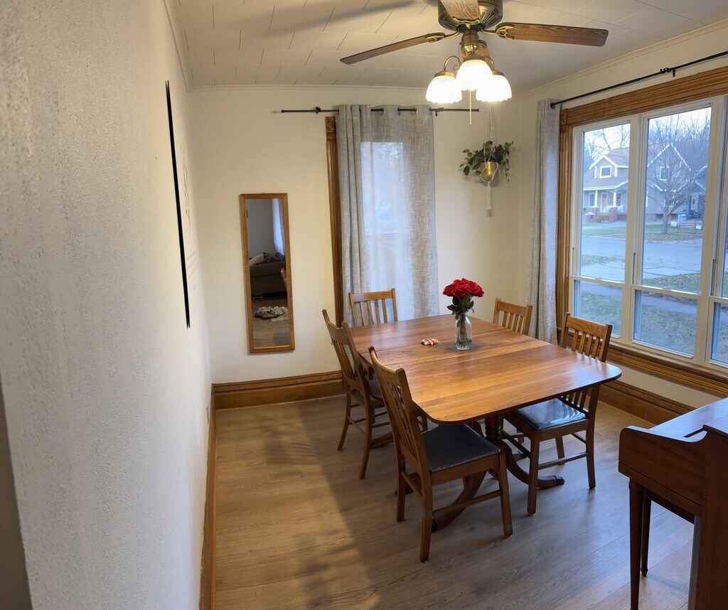 NOW RENTING FOR JUNE 1st, 2026! Cute as can be!!! This very clean and well-maintained 4-bedroom, 1.5-bath home is perfect for students looking to live close to campus in a comfortable, spacious setting. The house features large living spaces, bright bedrooms, and plenty of charm throughout. Interior has been completely remodeled! Enjoy laundry on the main level with newer appliances including a dishwasher and large kitchen with a half bath on the main level and a full bathroom upstairs! Property includes a large garage with off street parking! Tenants are responsible for lawn and snow.