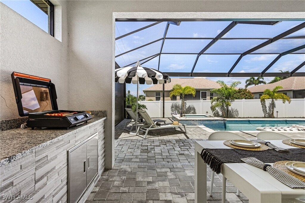 SHORT TERM POOL HOME AVAILABLE MAY 1ST - OCTOBER 31ST @$4,000/MONTH. NOV 2026 - APRIL 2027 AVAILABLE @ $7,000/MONTH. ***6 MONTH MINIMUM*** ((MAY BE OPEN TO AN ANNUAL RENTAL-INQUIRE WITHIN)) This newer construction,beautiful furnished residence features 3 bedrooms + den,3 full baths,a spacious open-concept floor plan with custom kitchen,luxury granite countertops,abundant closet space,and stylish finishes throughout. Enjoy true Florida living with your private screened-in pool and spa,perfect for year-round relaxation and entertaining. The split-plan layout offers privacy,comfort,and plenty of natural light,while the generous outdoor lanai with screened pool deck,outdoor kitchen,and fire pit area create an ideal space for morning coffee,sunset dinners,or evening gatherings. Located just minutes from shopping,dining,beaches,parks,and local attractions,this home captures the very best of the Cape Coral lifestyle,with easy access to beautiful destinations like Sanibel and Fort Myers and the local amenities that guests love in sunny SWFL! Move-in ready and designed for comfort,convenience,and memorable Florida living. **Tenant is responsible for pest control,pool service,water,electric,Wi-Fi,and cable. Owner pays lawn care and landscaping.**