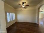 Jeff SheltonEnjoy stunning views and peaceful mornings from this beautiful home situated on a slightly elevated lot overlooking the 2nd Fairway of the Coyote Lakes Golf Course. This spacious residence features 3 bedrooms, 2 bathrooms, and a flowing floor plan designed for both comfort and entertaining. Step into the formal living area with warm laminate flooring, then move into the expansive dining space perfect for hosting guests. The large eat-in kitchen includes an island, smooth top range, and two pantries, and opens to a cozy family room with a gas fireplace. The primary suite offers serene backyard views, direct patio access, a walk-in shower, updated lighting, and a generous walk-in closet. Outdoors, enjoy your east-facing covered patio, perfect for morning coffee while watching the sun rise and golfers tee off. Surrounded by well-kept desert landscaping, this home delivers the lifestyle you've been waiting for.Additional features include a community pool, washer and dryer, and refrigerator (available for sale). Conveniently located near the 101 and 303 highways, with easy access to shopping and dining. Ceiling fans throughout, a two-car garage, and built-in storage add everyday convenience. No pets allowed.