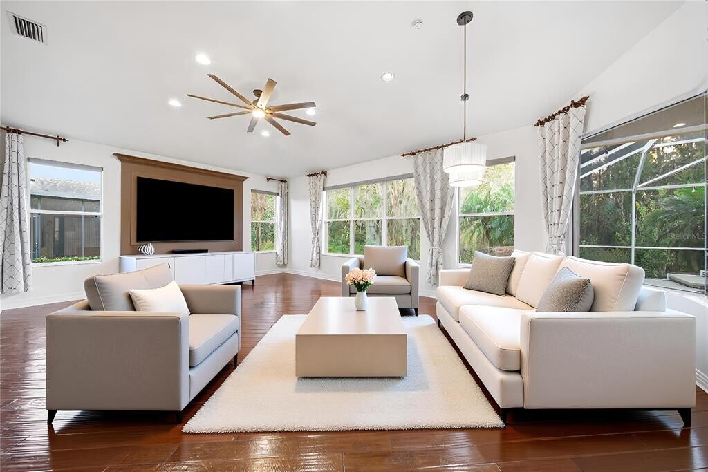One or more photo(s) has been virtually staged. Luxury Rental – Former Model Home with Pool,Spa & Conservation Views! Live in elegance in this former model home featuring 4 bedrooms + office + bonus room + loft and 4 full baths. The third-car garage includes two air-conditioned office spaces,perfect for remote work or creative use. This home is for comfort and entertaining,this spacious home is loaded with upgrades — including a heated pool and spa,Brazilian hardwood floors,granite countertops,motorized blinds,crown molding,and three-zone A/C. The chef’s kitchen offers cherry wood cabinets,a large center island,granite counters,and built-in oven and microwave. The breakfast nook features a custom fused-glass window overlooking the screen-enclosed pool and spa with peaceful conservation views.The primary suite is a true retreat with walk-in closets,a morning coffee bar,and a spa-style bath with dual vanities,soaking tub,and walk-in shower. The split bedroom plan provides privacy for everyone. Upstairs,enjoy a bonus room,fourth bedroom,and full bath—ideal for guests or multi-generational living.This home blends luxury,functionality,and tranquility—ready for immediate occupancy. Experience resort-style living—schedule your private tour today! MLS# TB8444933