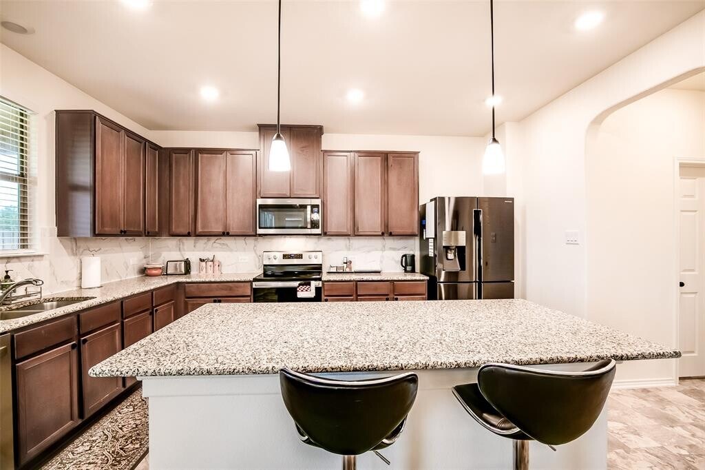 Beautiful two-story single-family home features 4 bedrooms and 3.5 bathrooms with approximately 2,535 sq. ft. of living space in the desirable Haven Oaks subdivision of Leander. Built in 2021, the home offers an open-concept layout ideal for modern living. This well-designed floor plan with a spacious living area, granite countertops, luxury-style flooring, and an upstairs game room, adding extra functional space for family and guests. The kitchen includes standard appliances and flows seamlessly into the adjacent dining and living spaces. The house also features a large backyard, perfect for outdoor enjoyment and entertaining. A 2-car garage provides convenient parking and storage. This home has central heating and cooling, carpet and luxury flooring, and underground utilities. Refrigerator, Washer and dryer is included.