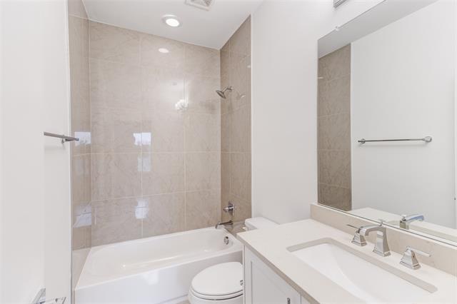 Contemporary 4 Story Townhome near Downtown Dallas and Uptown. The home features a private fenced & turfed yard and a fabulous rooftop patio. The main living area is light and bright with energy-efficient large windows, custom lighting, and architectural design. The kitchen has a large quartz kitchen island, stainless steel appliances, a Fisher and Paykel gas oven + range, a microwave, and a walk-in pantry. The Primary Bedroom has an En-Suite bathroom with marble tile, a glass shower, and a walk-in closet. The rooftop patio has 360-degree views of Downtown Dallas. Enjoy the convenience of a tankless water heater and 2-car garage. The flexible first-floor bedroom currently serves as an office. Come and see this gem and make it your own! GREAT Dallas location with easy access to Downtown, Uptown, Deep Elum, restaurants & shopping. The washer & Dryer unit remains. ** Water-Sewer-Trash Services Included **