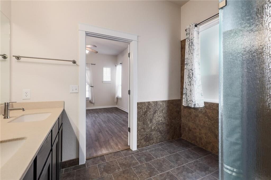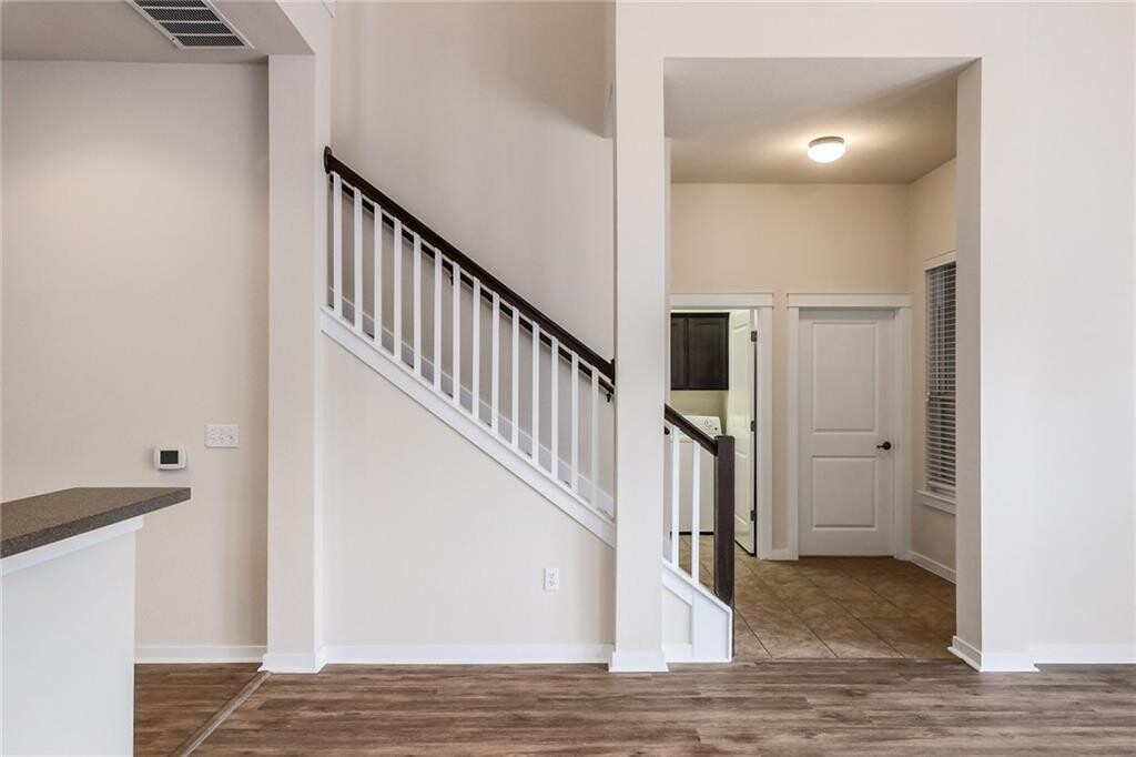 Enjoy all that Mueller has to offer in this home! Downstairs you'll love the vaulted ceilings and natural light that highlights the open kitchen/living room. The spacious eat-in kitchen features a center island and plenty of counter & cabinet space. Entertain in the formal dining room or use as a flex space. The large primary suite is located downstairs with a walk-in closet, double vanities, & walk-in shower. Upstairs are two additional bedrooms & bathroom. Enjoy a low maintenance private backyard! Carpet has been replaced with wood flooring to match the downstairs.
