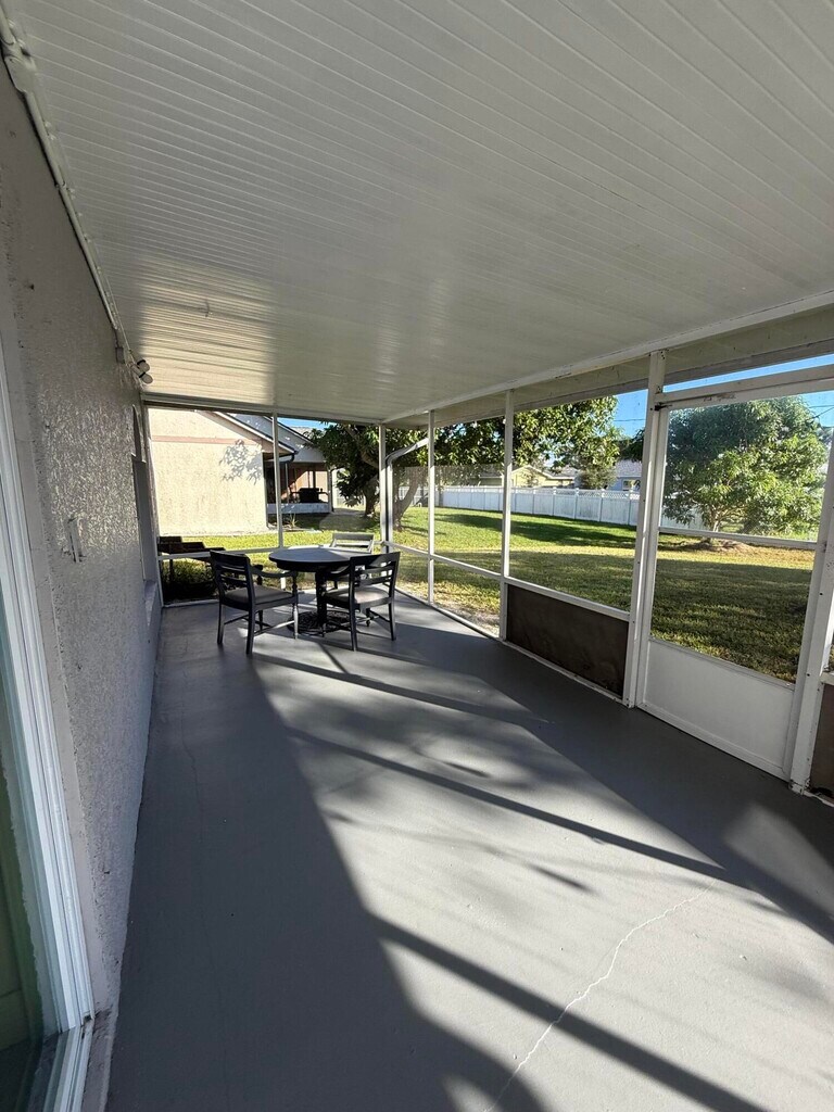 Beautiful and Spacious 4-Bedroom Home for Rent in Port St. Lucie! Beautiful, updated 2-story home centrally located in Port St. Lucie! This lovely property features 4 bedrooms (including a versatile loft/den) and 2.5 bathrooms. The home offers a modern metal roof (2018), gorgeous 24'' tile throughout the first floor, and wood laminate flooring upstairs. Enjoy a stylish kitchen with wood cabinets and stainless steel appliances, plus a formal dining room and a cozy breakfast area that opens to a large family room. The master suite includes an updated, contemporary bathroom with dual sinks, a walk-in glass shower, and a Roman tub, while the second bathroom upstairs has also been beautifully updated. The home boasts a large screened patio with plenty of space for outdoor entertaining or