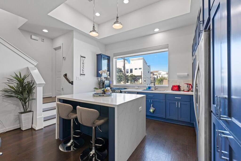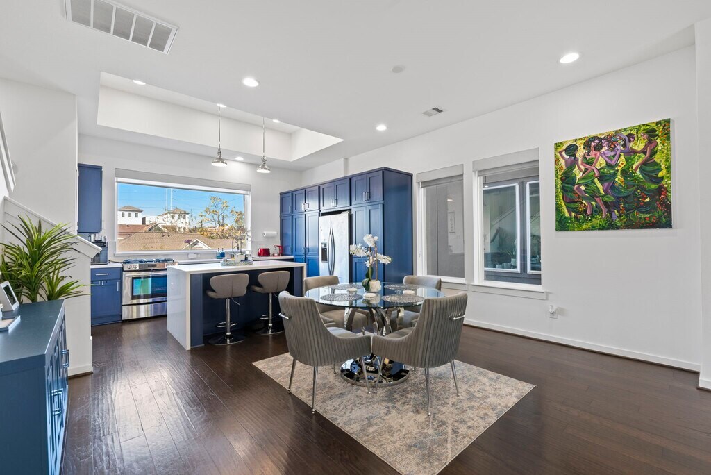 Beautiful gated townhouse located in the popular Sawyer Heights community/Arts District of Houston. Easy access to Downtown,Midtown,and Heights areas. Step through the front door and you're able to access the garage and a bedroom with an en-suite bathroom. Hardwood stairs guide you to the 2nd floor and showcases the Living/Dining/Kitchen areas. Large open space to have it all...TV and Sitting area and casual/formal Dining right off the Kitchen. Open Kitchen features amazing lighting to show off the amazing SS appliances,custom cabinets,and Quartz countertops. Take the stairs to the third floor to find another secondary bedroom with an en-suite bath and the large primary bedroom with its spa like bathroom. Take the next set of stairs up to the 4th floor rooftop retreat with a priceless view!!!. Perfect place for an outdoor oasis. MLS# 13615029
