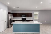 Minimize your electricity expenses with the provided SOLAR panel. This 3 bedroom/2 bathroom split floor plan presents an outstanding value proposition. The seamless open-concept living area and generous kitchen with island make it an ideal space for family bonding. The property also comes with a front yard desert landscape package,2'' blinds,garage door opener,smart home package,and rain gutters. Explore the serene neighborhood of Heartland Ranch