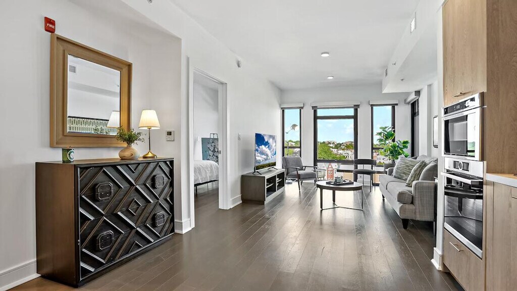 Feel at home in this luxurious 1-bedroom, 1-bathroom apartment in the heart of Washington, DC. This apartment offers uncompromised luxury and a rich setting with a modern sensibility to evoke a timeless style. It is situated on a quiet corner steps away from DC’s iconic Shaw area. Parking is available in the garage for an extra daily/monthly fee and must be arranged in advance. Pets are welcome for an extra daily/monthly fee; please inquire before booking. Shaw is a vibrant, upcoming hotspot for Washingtonians, with many restaurants, bars, and nightlife right outside your doorstep. This is a busy street on the weekends. [SI]